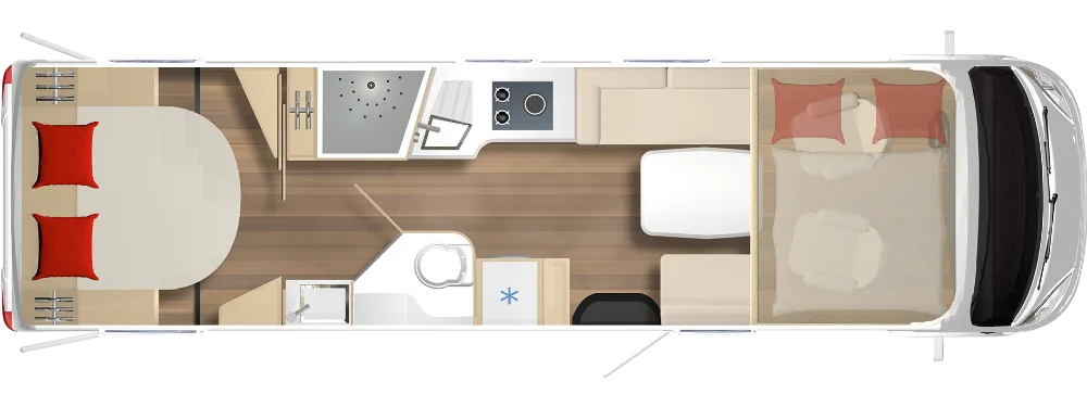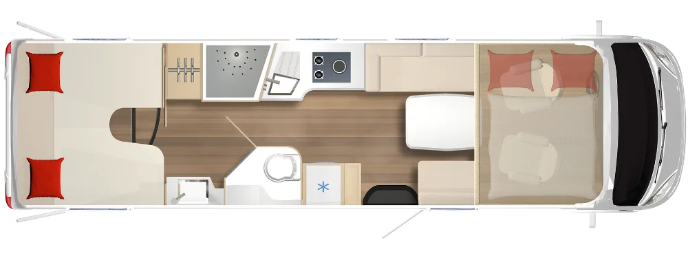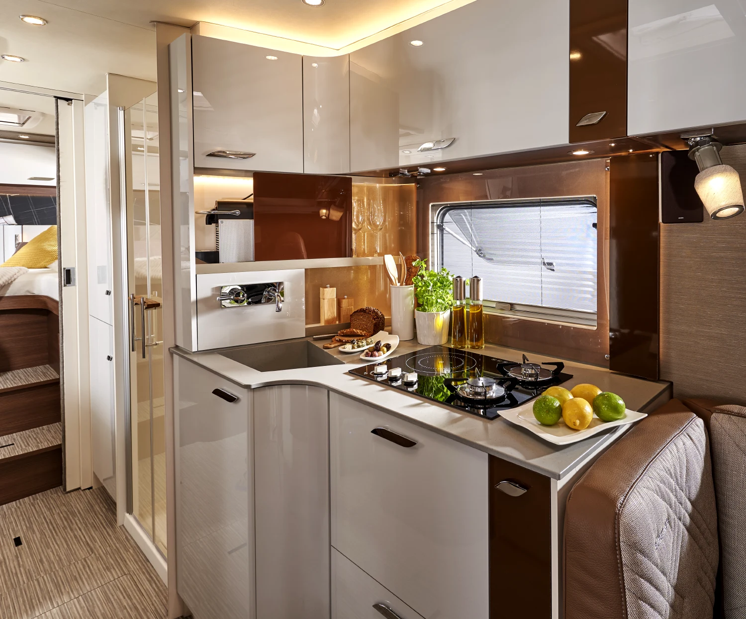 Modele z serii Elegance to niezawodne kampery 4 osobowe, które zapewniają luksusowe warunki do podróżowania. Dzięki perfekcyjnie rozplanowanej przestrzeni każdy wyjazd stanowi niezapomniane przeżycie, obfitujące w radosne momenty i niekwestionowany relaks.