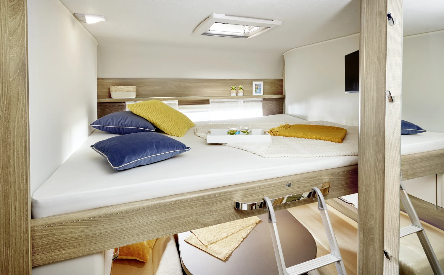 • strefa z łóżkiem piętrowym i miejscem do przechowywania, dodatkowo z siedzeniami i stolikiem, pełniąca rolę oddzielnego pokoju dziecięcego (w wybranych modelach)