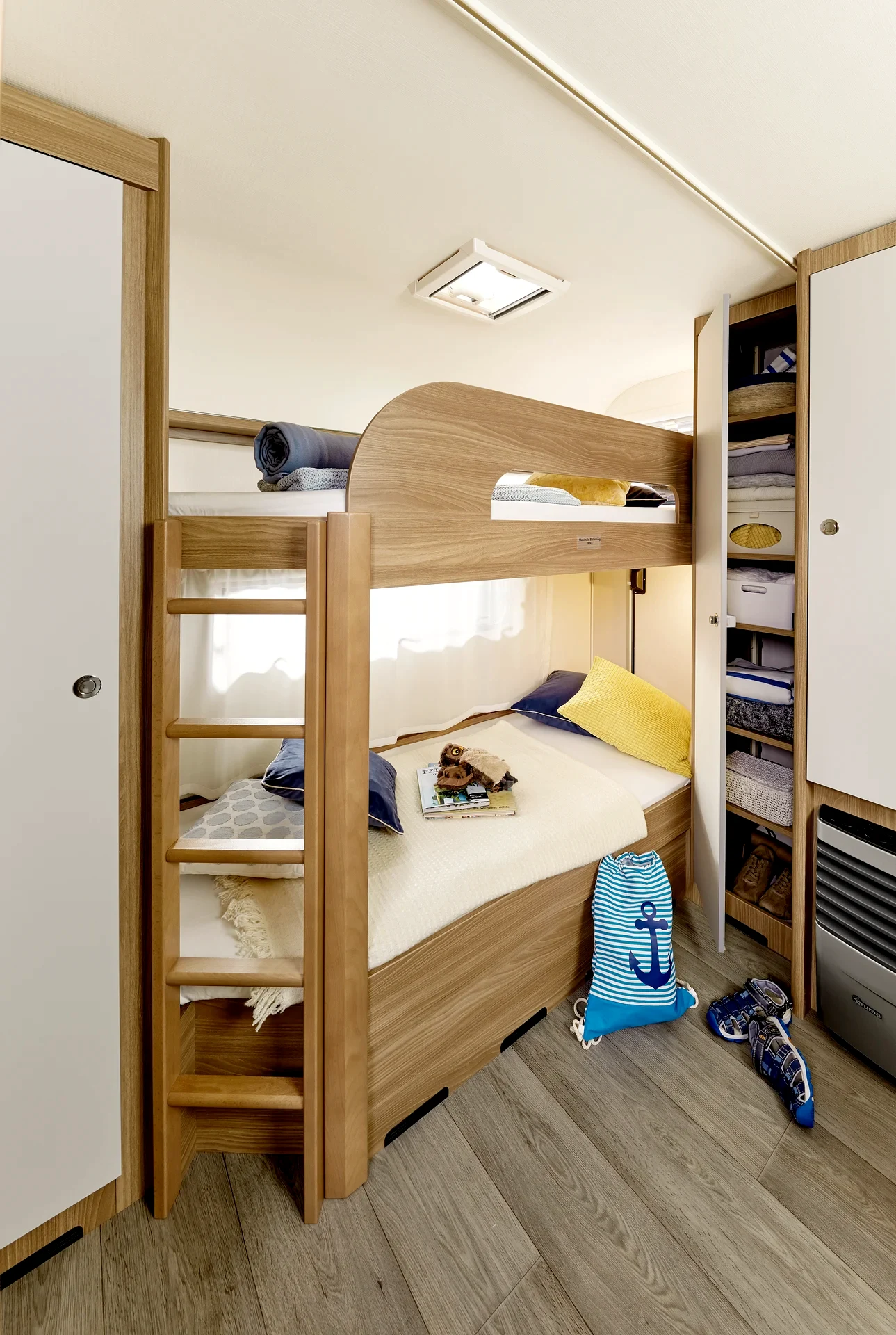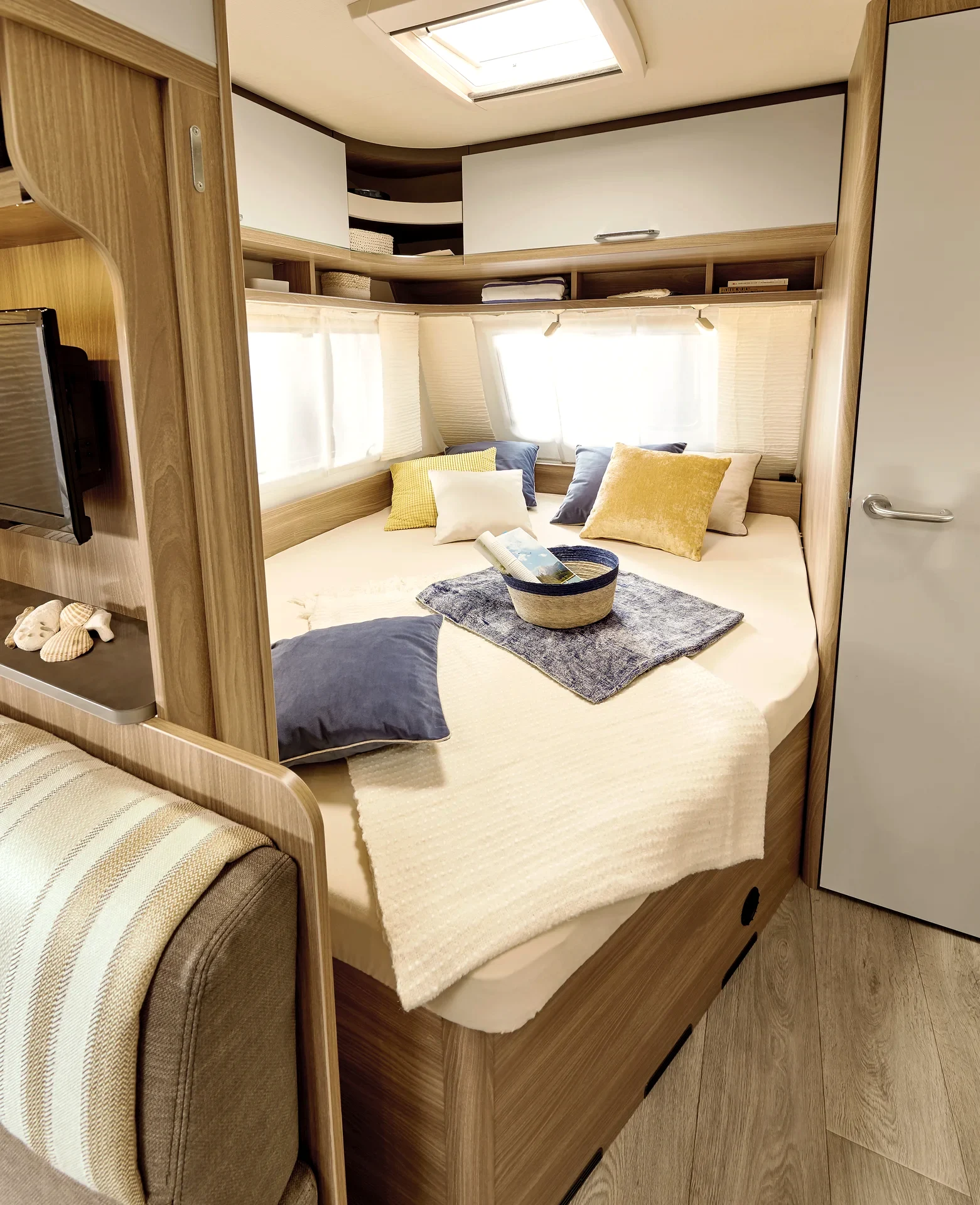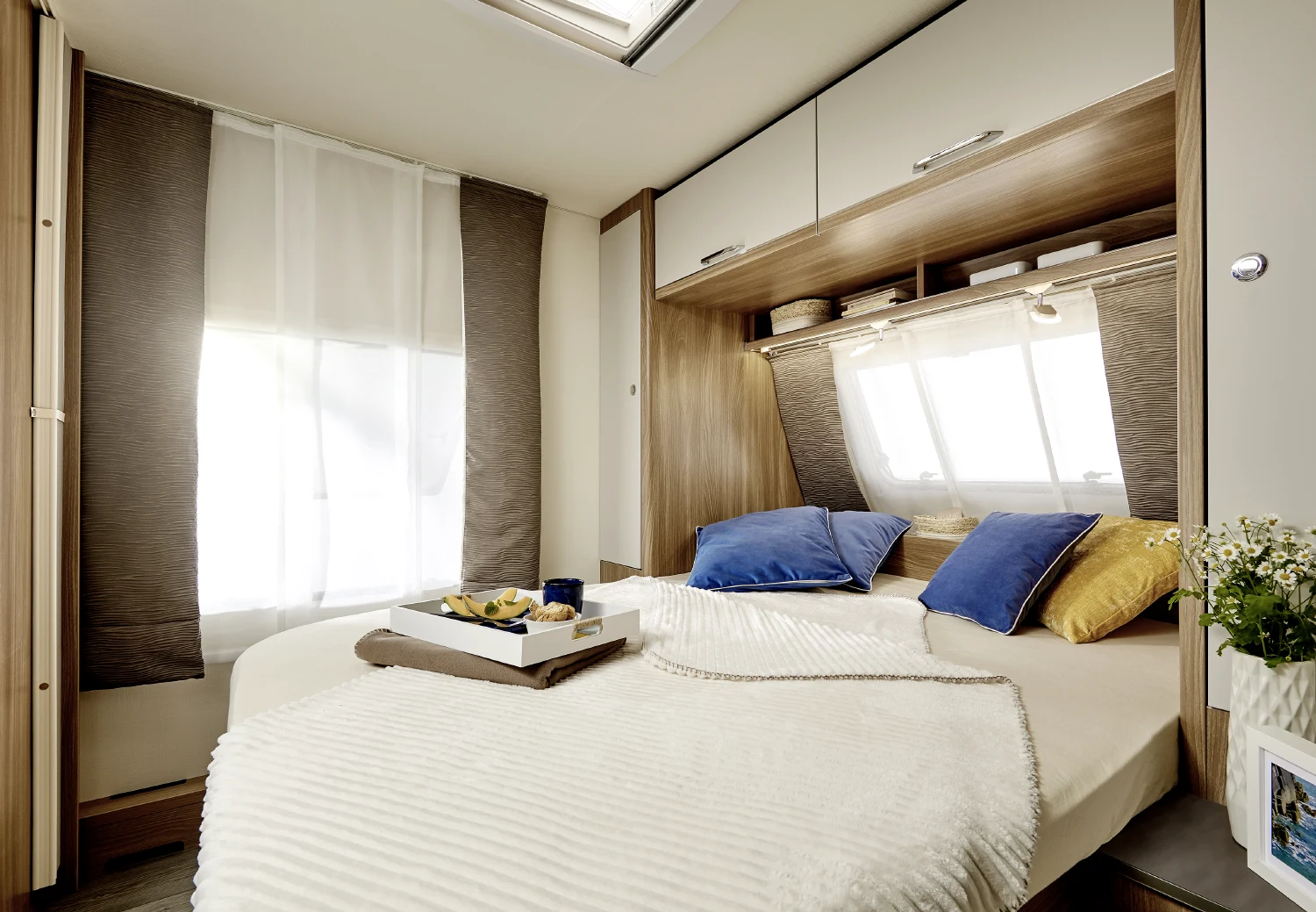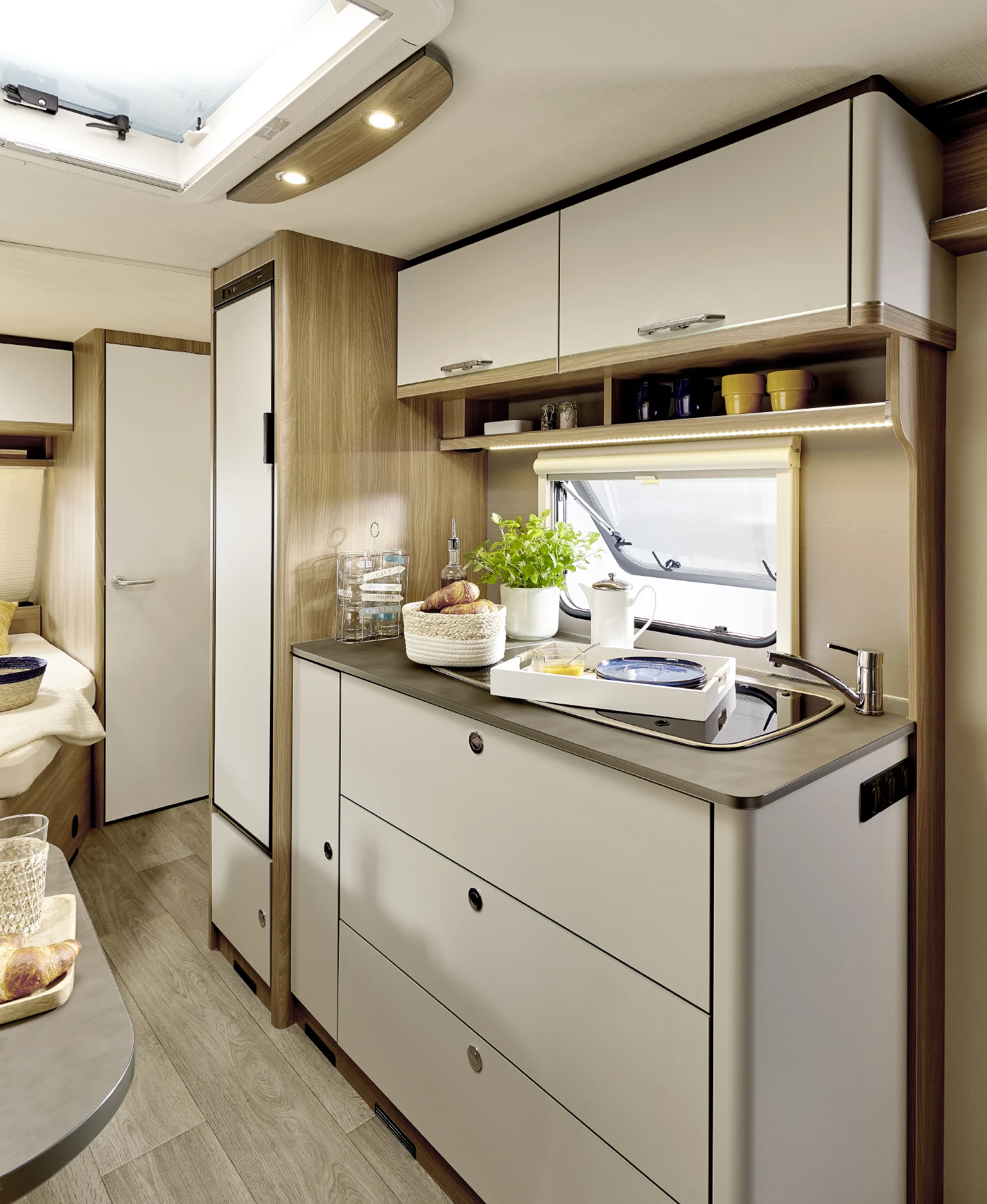 Entuzjaści caravaningu i relaksu w bezpośrednim otoczeniu przyrody mają do dyspozycji mnóstwo miejsca do przechowywania, co od razu pozwala poczuć się jak w domu. Producent zadbał też o komfortową sypialnię, część jadalnianą i kuchenną oraz praktyczną łazienkę. Nowe przyczepy kempingowe z serii Premio zróżnicowane są pod względem układów wnętrz, co umożliwia wybór najtrafniejszego wariantu aranżacyjnego – zarówno dla 2 osób, jak też dla rodzin podróżujących z dziećmi.