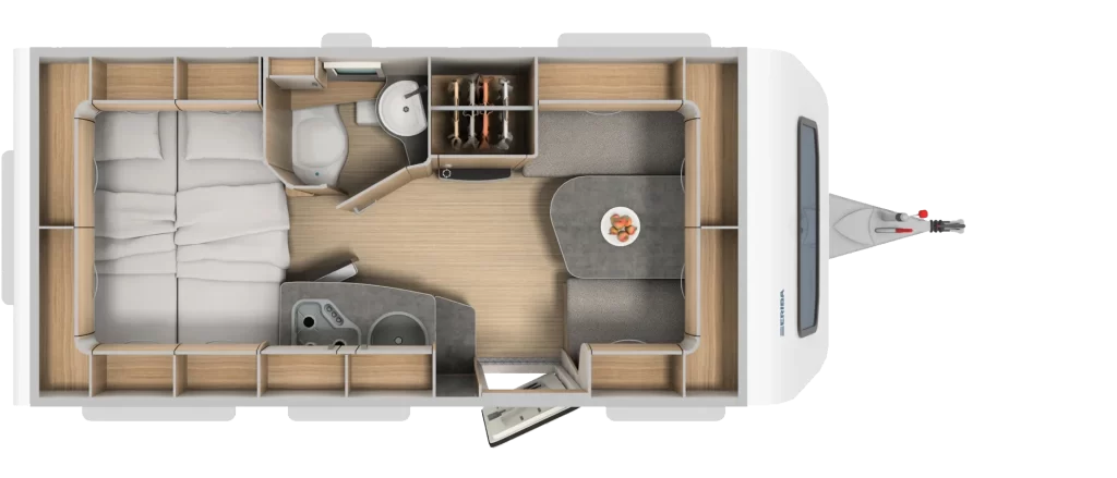 Lekka konstrukcja zapewniająca jednocześnie dużą ładowność to jedna z rozpoznawalnych cech przyczepy kempingowej Eriba dla 3-7 osób. Komfortowe i stylowo wykończone wnętrze uprzyjemnia każdy wyjazd z rodziną – małe i duże wycieczki nabierają fascynującego wymiaru! Producent przekazuje do dyspozycji użytkowników kilka układów wnętrz, mając tym samym na uwadze zróżnicowane potrzeby odnośnie wyposażenia strefy dziennej i sypialnianej.