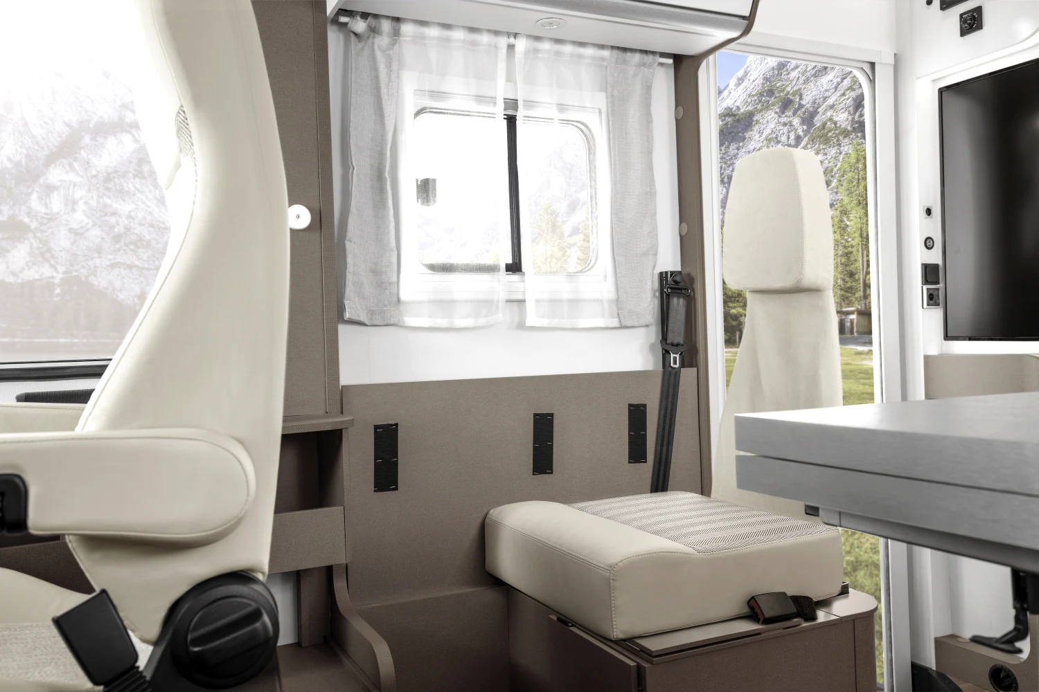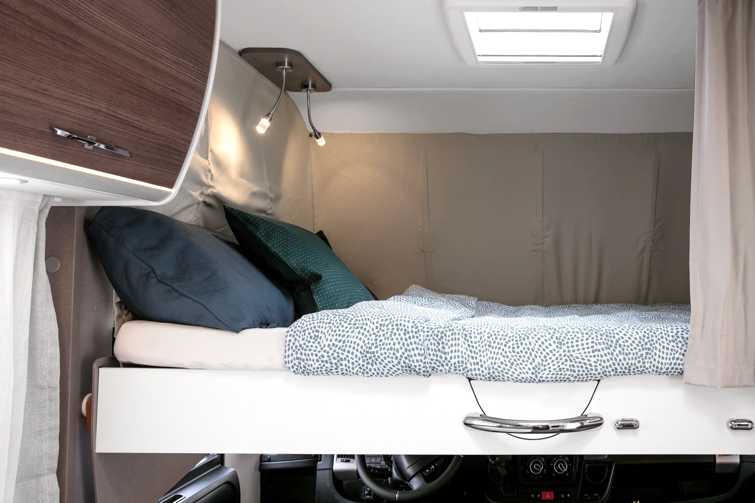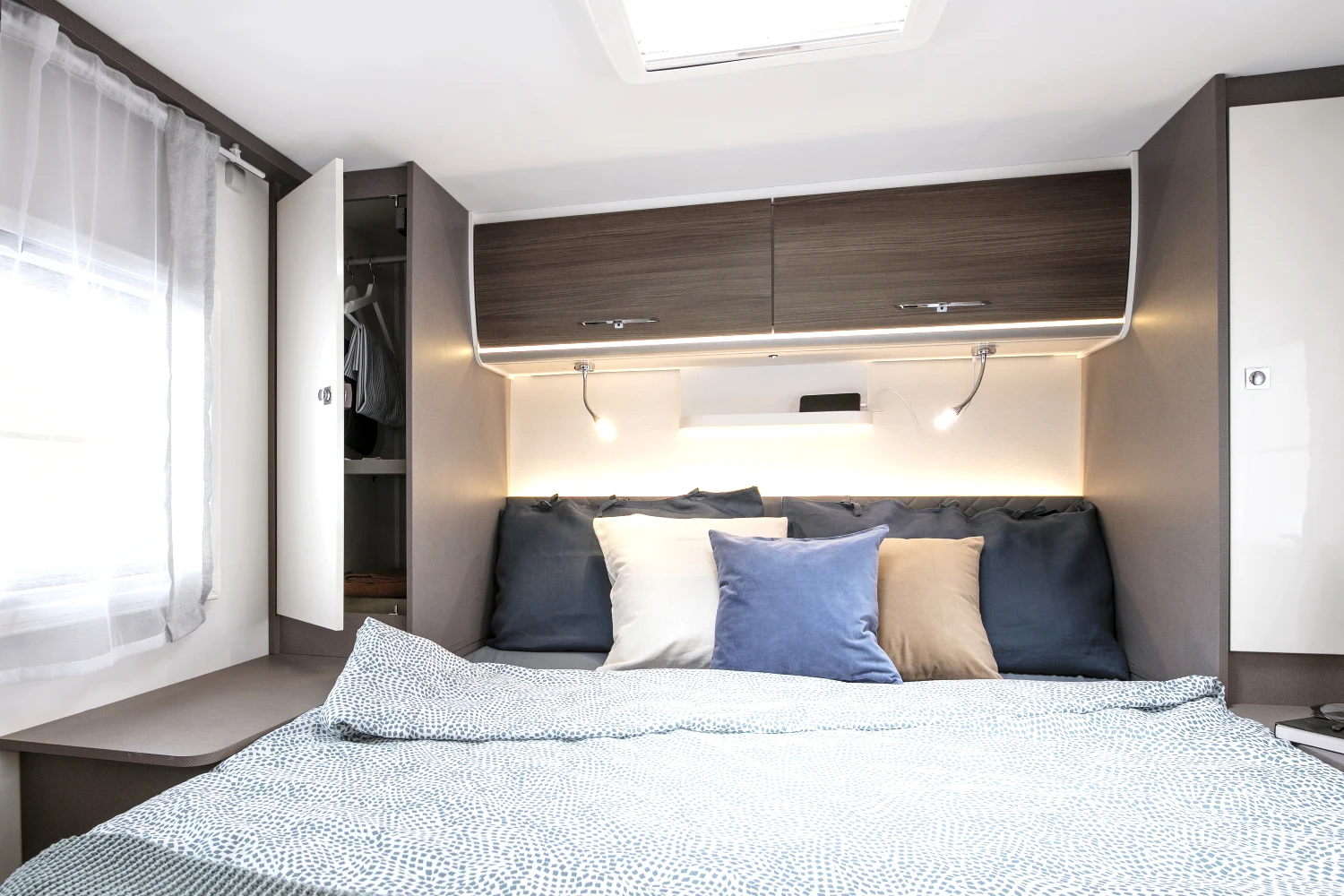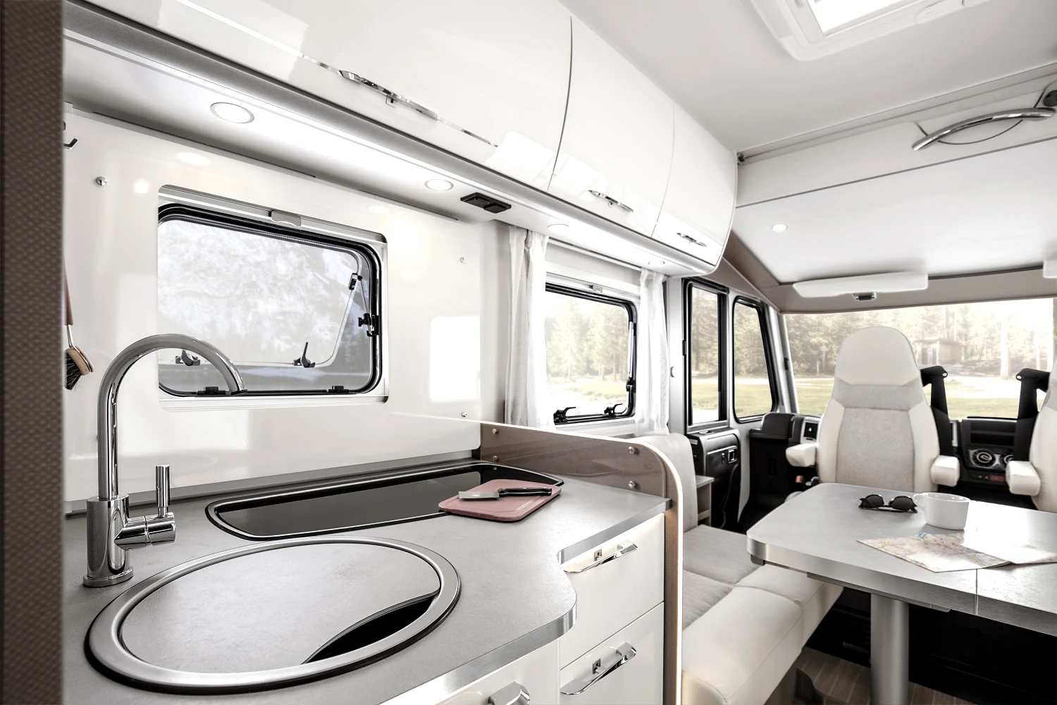 Zintegrowane kampery o długości ok. 7 metrów to bez wątpienia oferta dla osób nie uznających kompromisów. W strefie mieszkalnej można poczuć się jak w domu, jednak z pewnym wyjątkiem – panoramiczne okna umożliwiają podziwianie zmieniających się co chwilę widoków. Szybko można się przekonać, że taki relaks wpływa regenerująco zarówno na umysł, jak i na ciało.