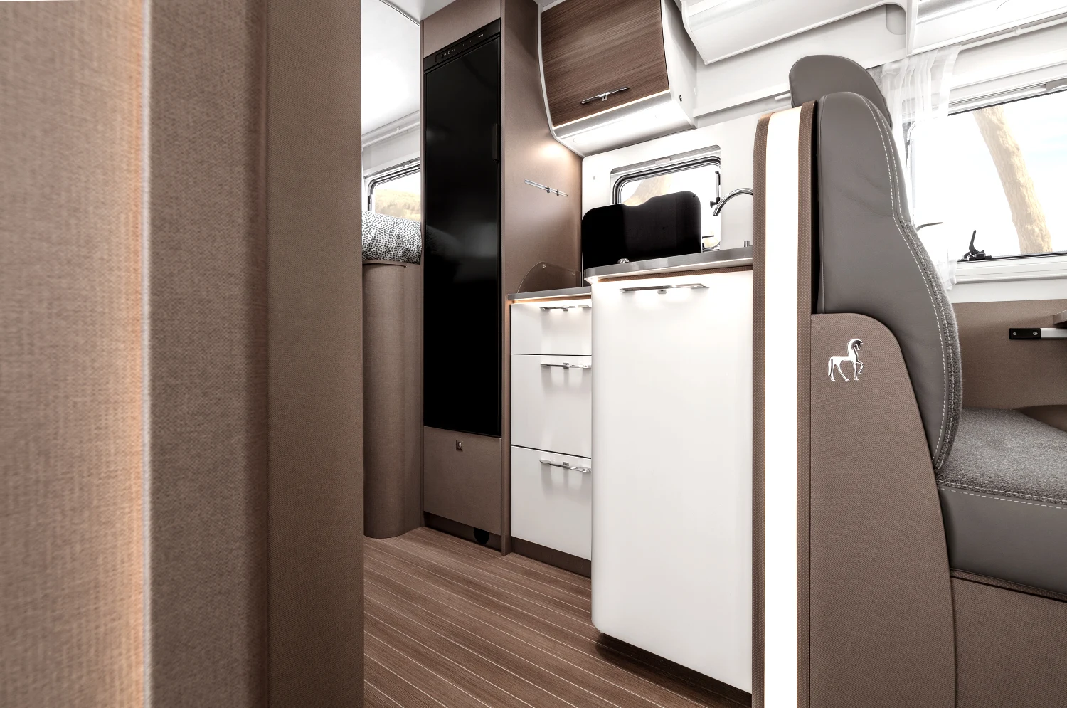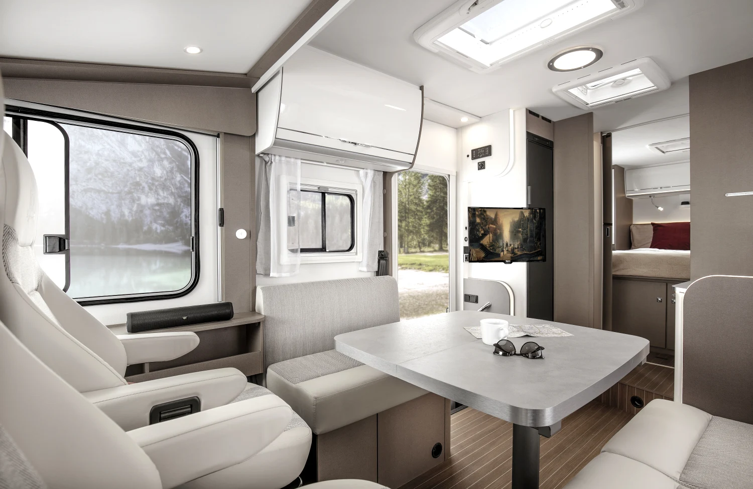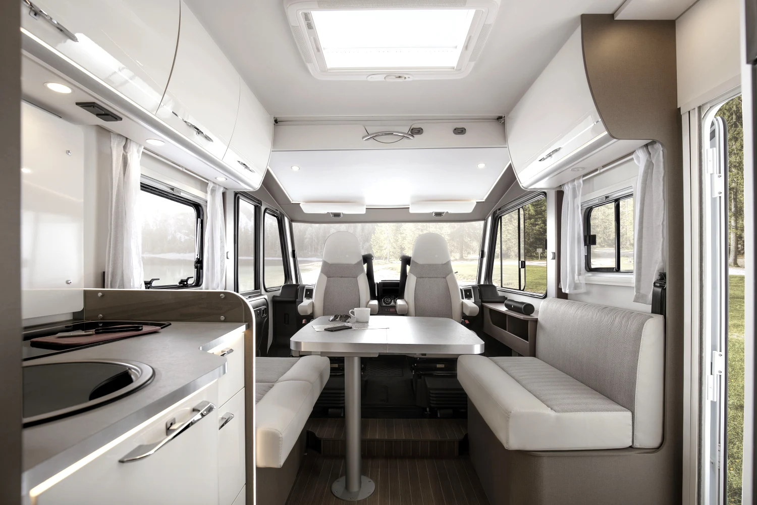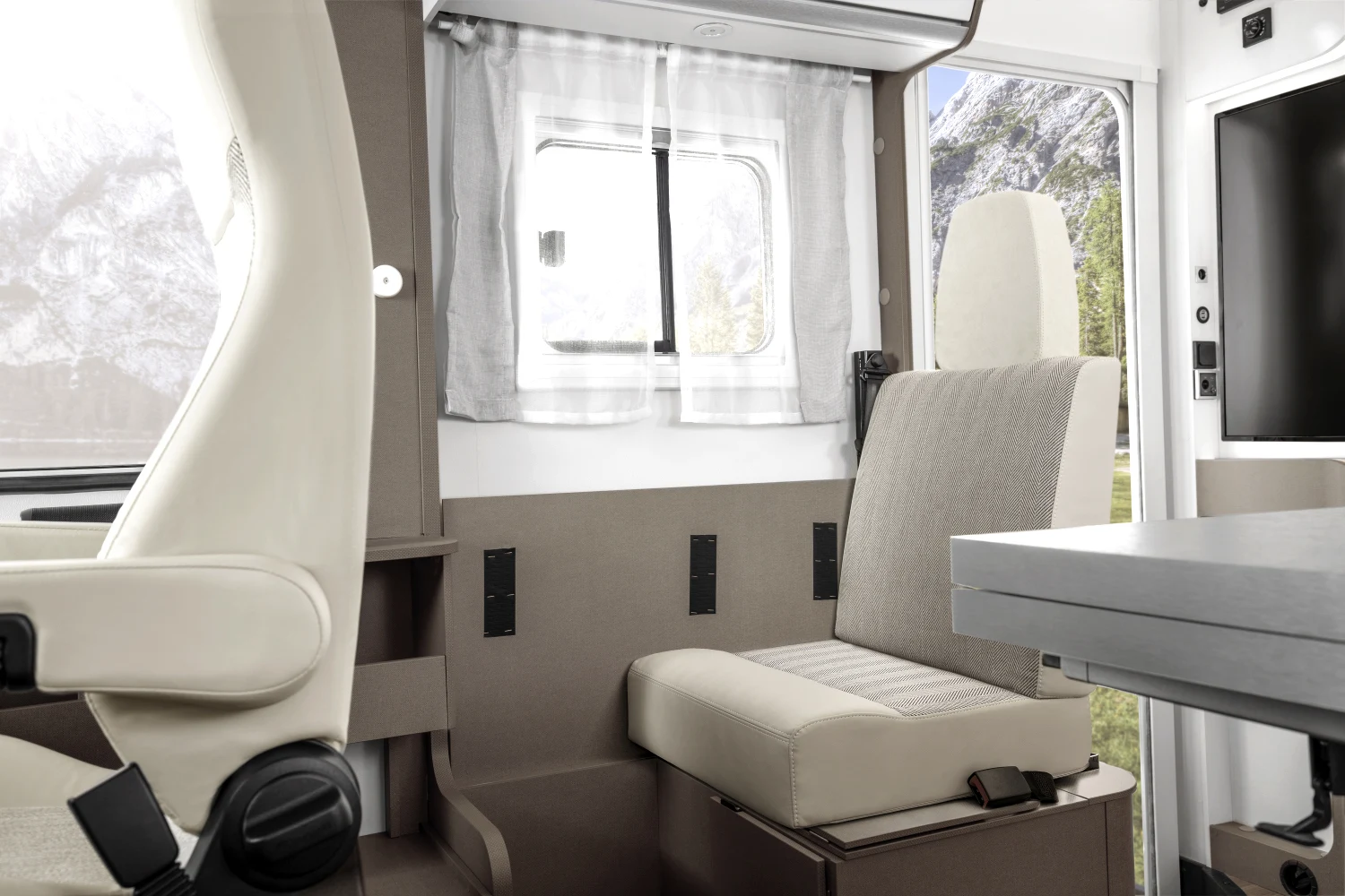 Zintegrowane kampery o długości ok. 7 metrów to bez wątpienia oferta dla osób nie uznających kompromisów. W strefie mieszkalnej można poczuć się jak w domu, jednak z pewnym wyjątkiem – panoramiczne okna umożliwiają podziwianie zmieniających się co chwilę widoków. Szybko można się przekonać, że taki relaks wpływa regenerująco zarówno na umysł, jak i na ciało.