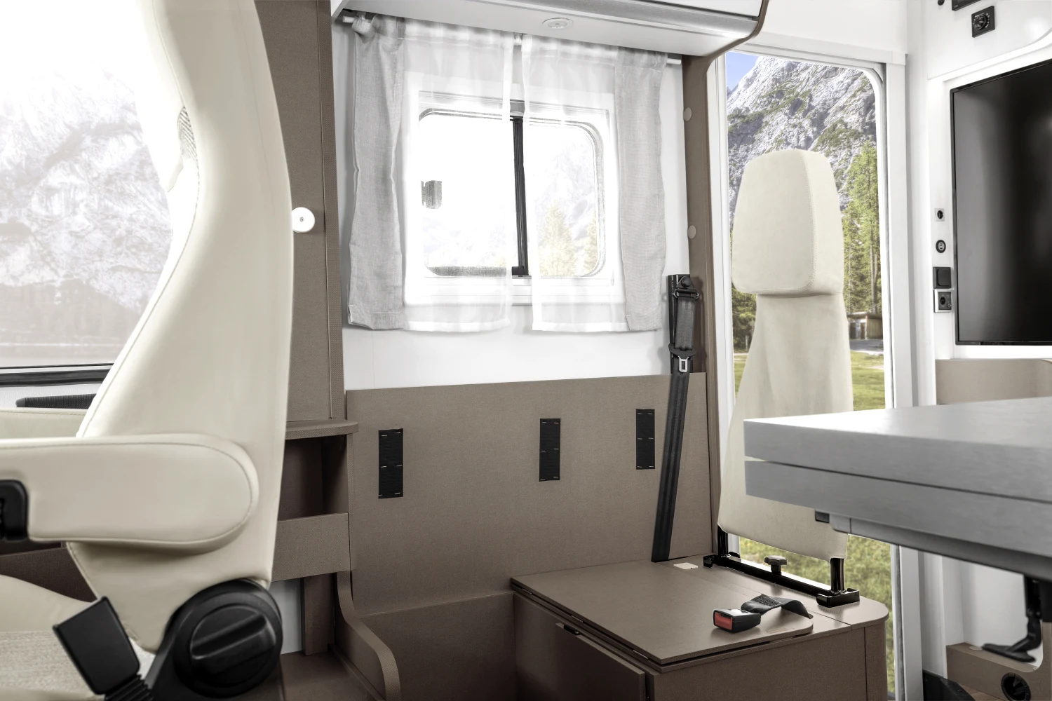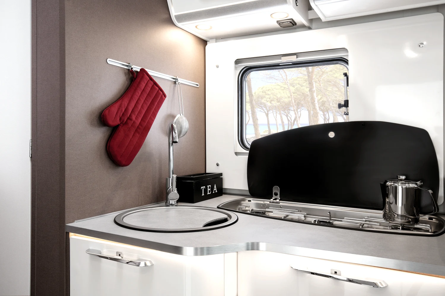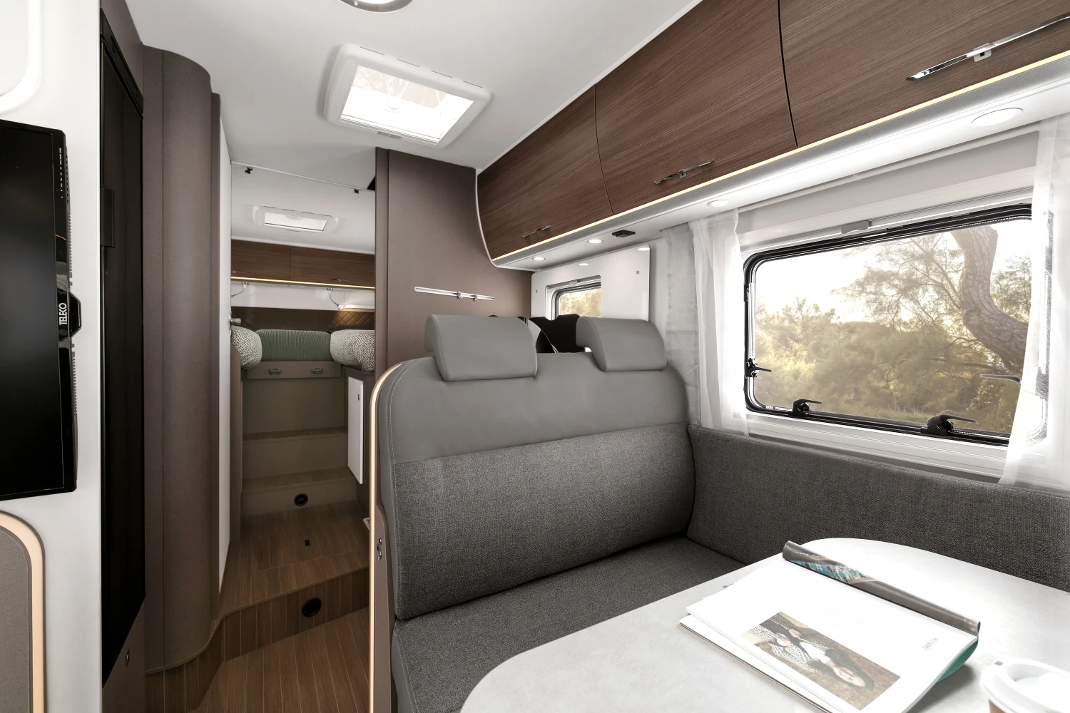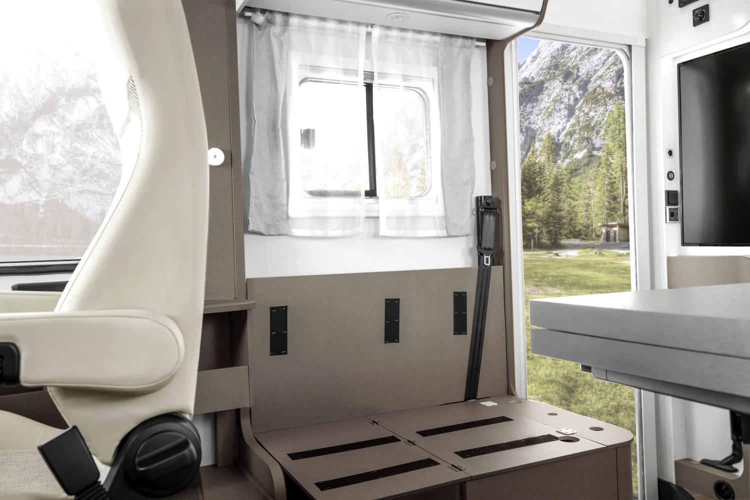 Zintegrowane kampery o długości ok. 7 metrów to bez wątpienia oferta dla osób nie uznających kompromisów. W strefie mieszkalnej można poczuć się jak w domu, jednak z pewnym wyjątkiem – panoramiczne okna umożliwiają podziwianie zmieniających się co chwilę widoków. Szybko można się przekonać, że taki relaks wpływa regenerująco zarówno na umysł, jak i na ciało.