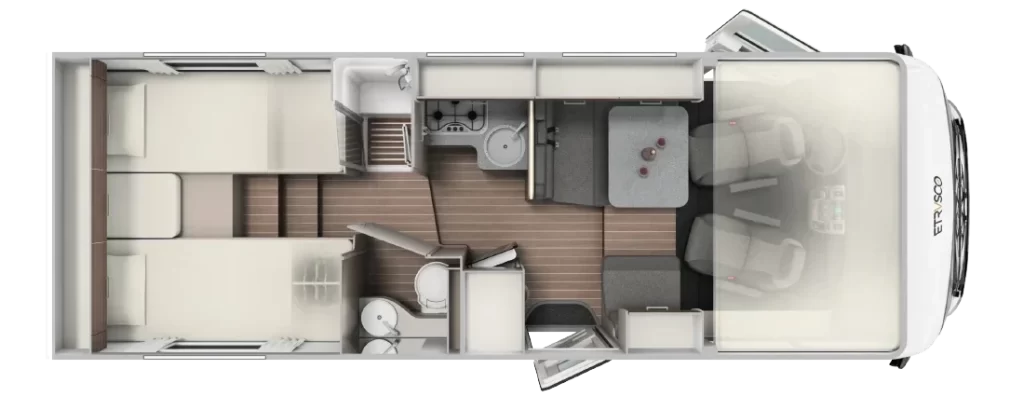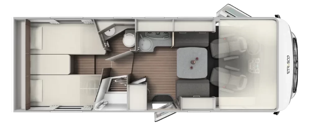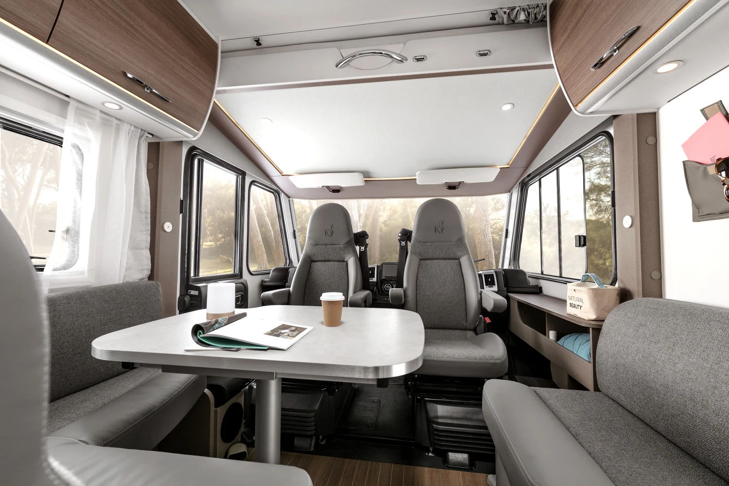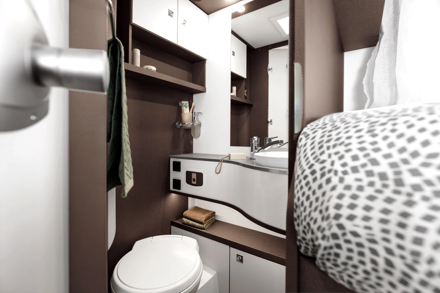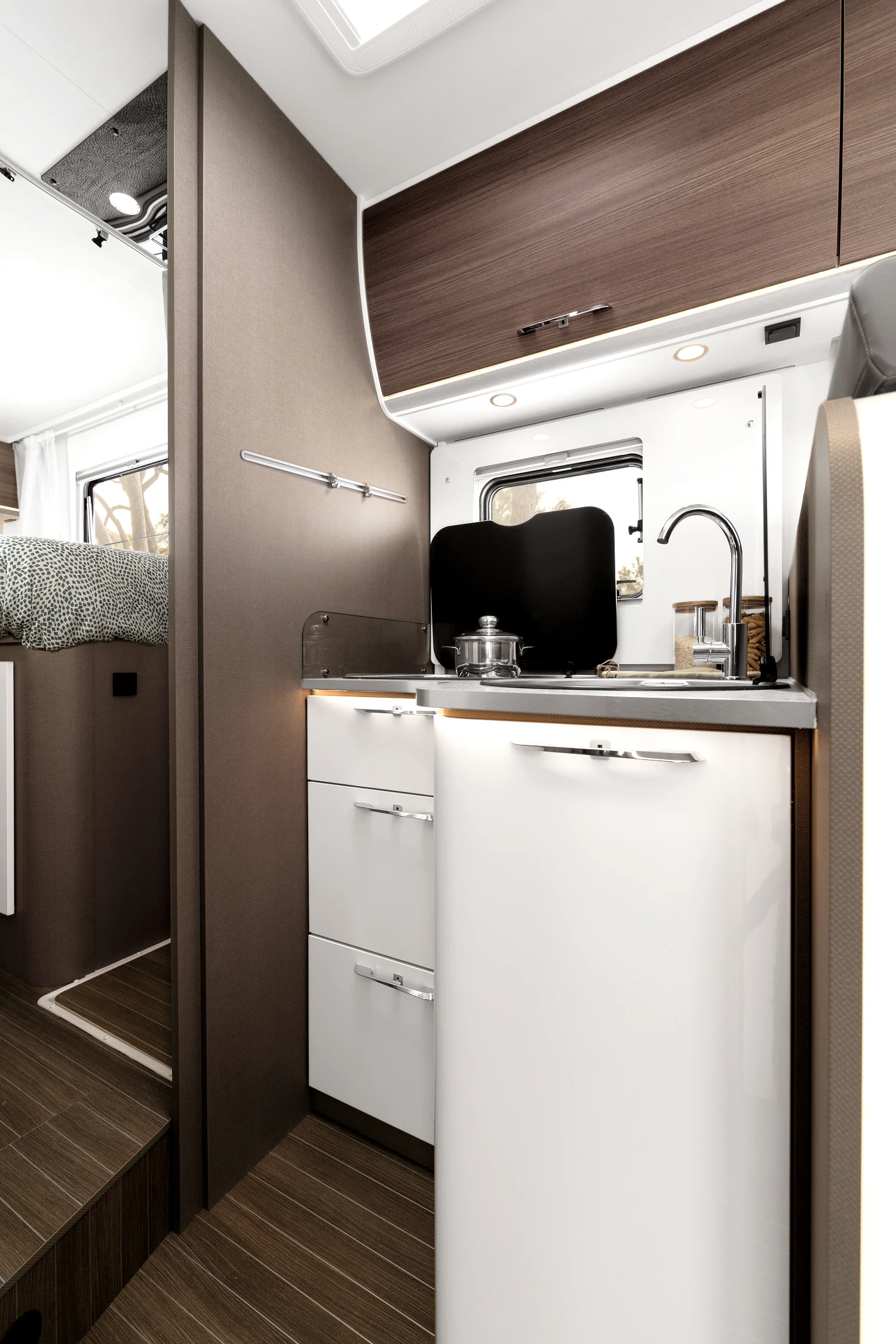 Zintegrowane kampery o długości ok. 7 metrów to bez wątpienia oferta dla osób nie uznających kompromisów. W strefie mieszkalnej można poczuć się jak w domu, jednak z pewnym wyjątkiem – panoramiczne okna umożliwiają podziwianie zmieniających się co chwilę widoków. Szybko można się przekonać, że taki relaks wpływa regenerująco zarówno na umysł, jak i na ciało.
