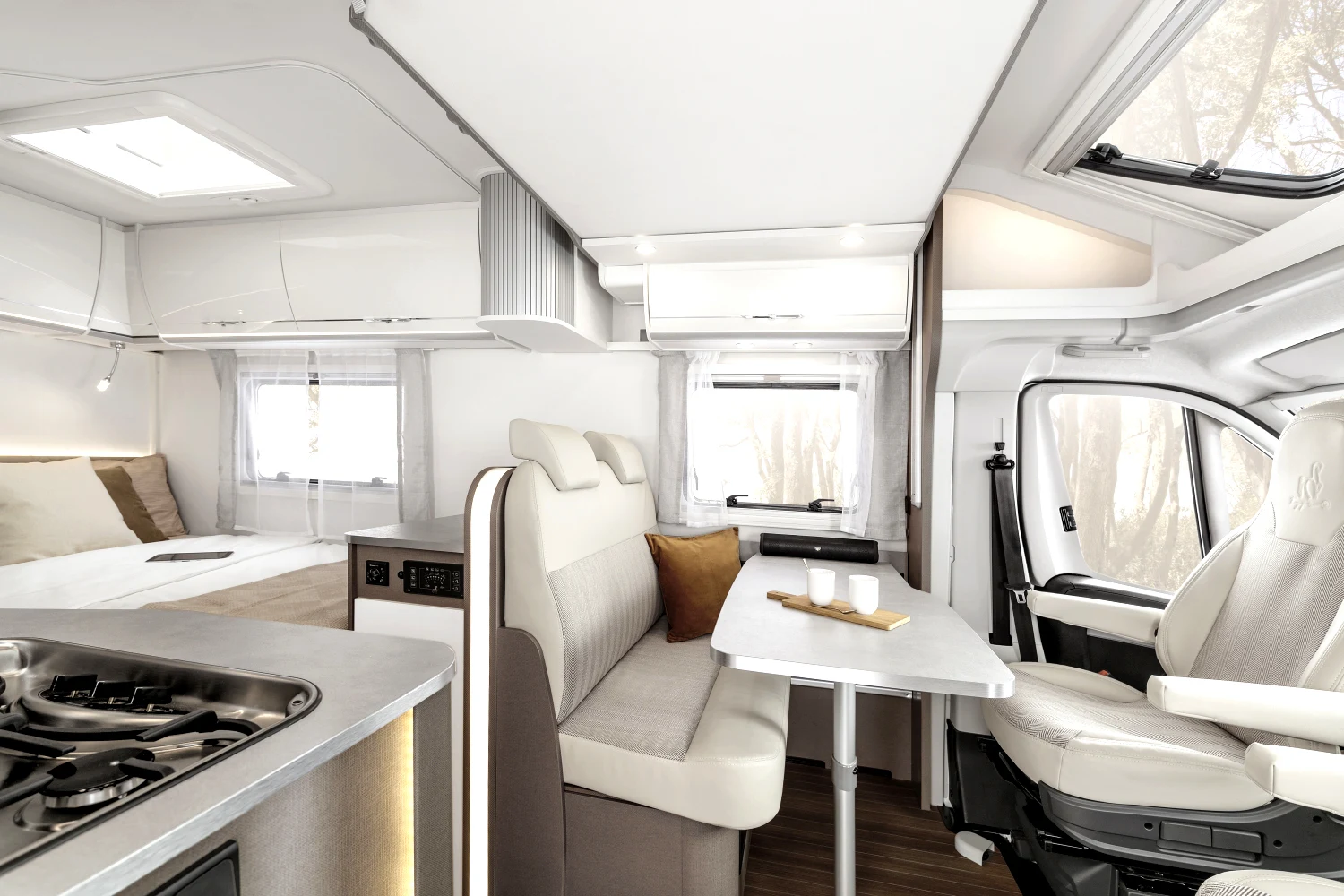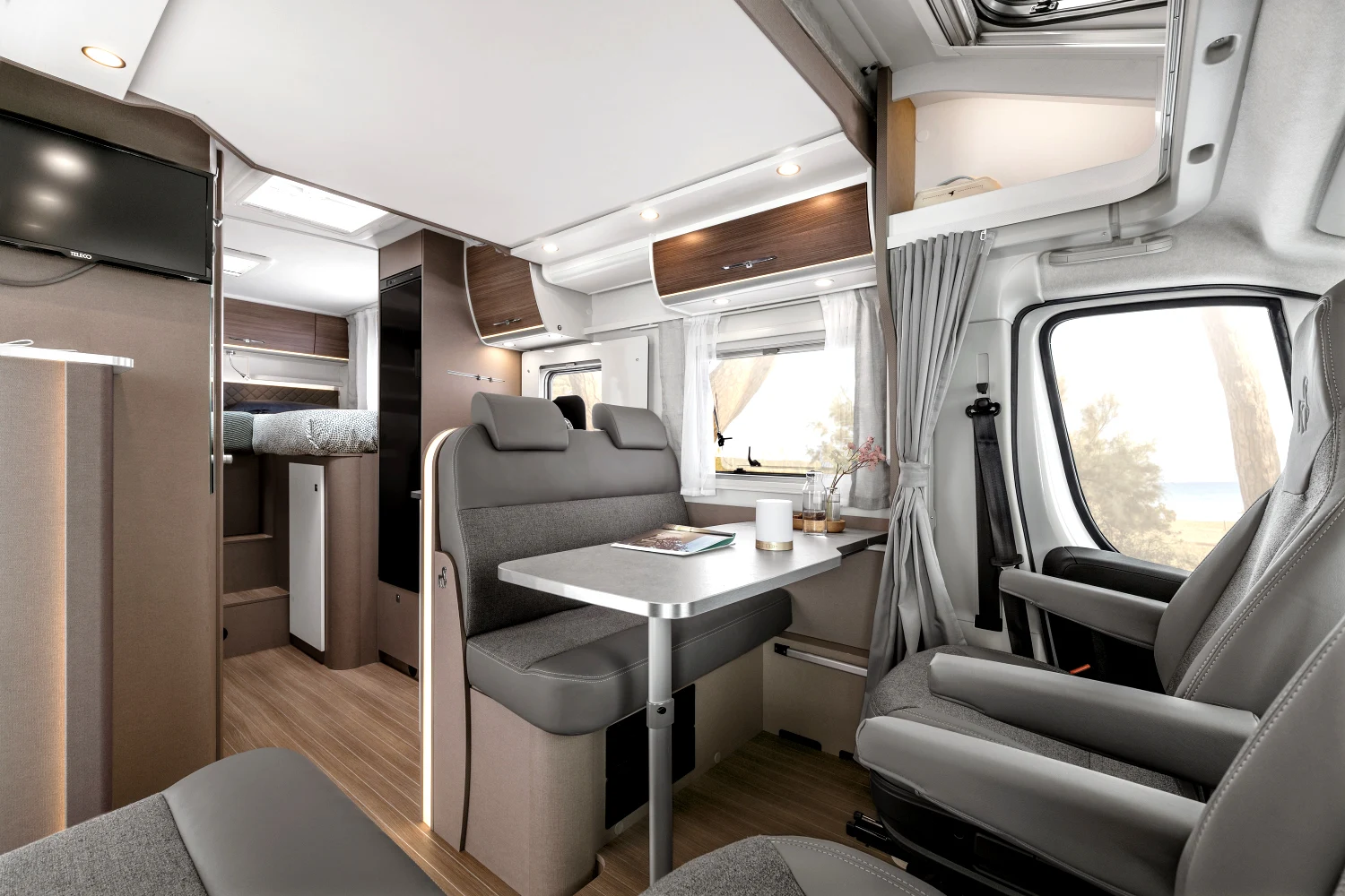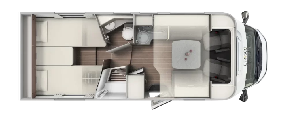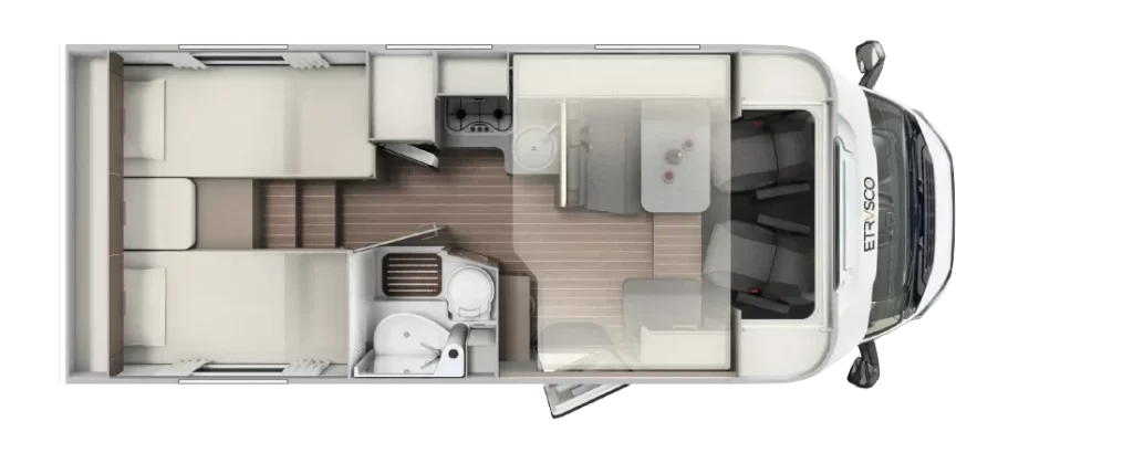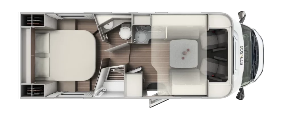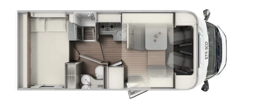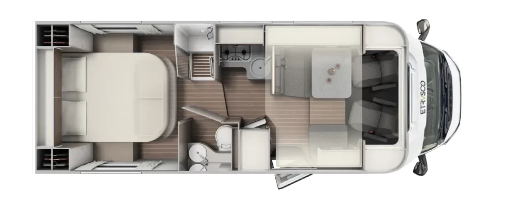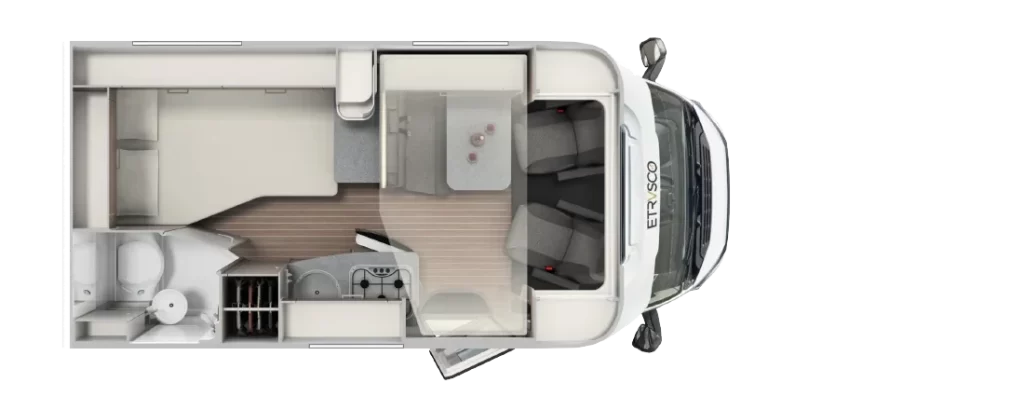Włoski producent kamperów proponuje nie tylko bezpieczną i komfortową jazdę, ale też atrakcyjny design. Dzięki nowatorskiej koncepcji wnętrza można się poczuć wyjątkowo – klimatyczna i wygodna przestrzeń sprzyja odbieraniu podróżniczych doznań wszystkimi zmysłami. Innowacyjne modele półintegra dla 4 lub 5 osób to doskonały wybór na weekend z ukochaną osobą, wycieczkę ze znajomymi, a także na wakacje z rodziną. Starannie rozplanowane miejsce na sypialnię, aneks kuchenny i jadalnię oraz łazienkę usatysfakcjonuje pasjonatów podróży i miłośników efektownych wnętrz.