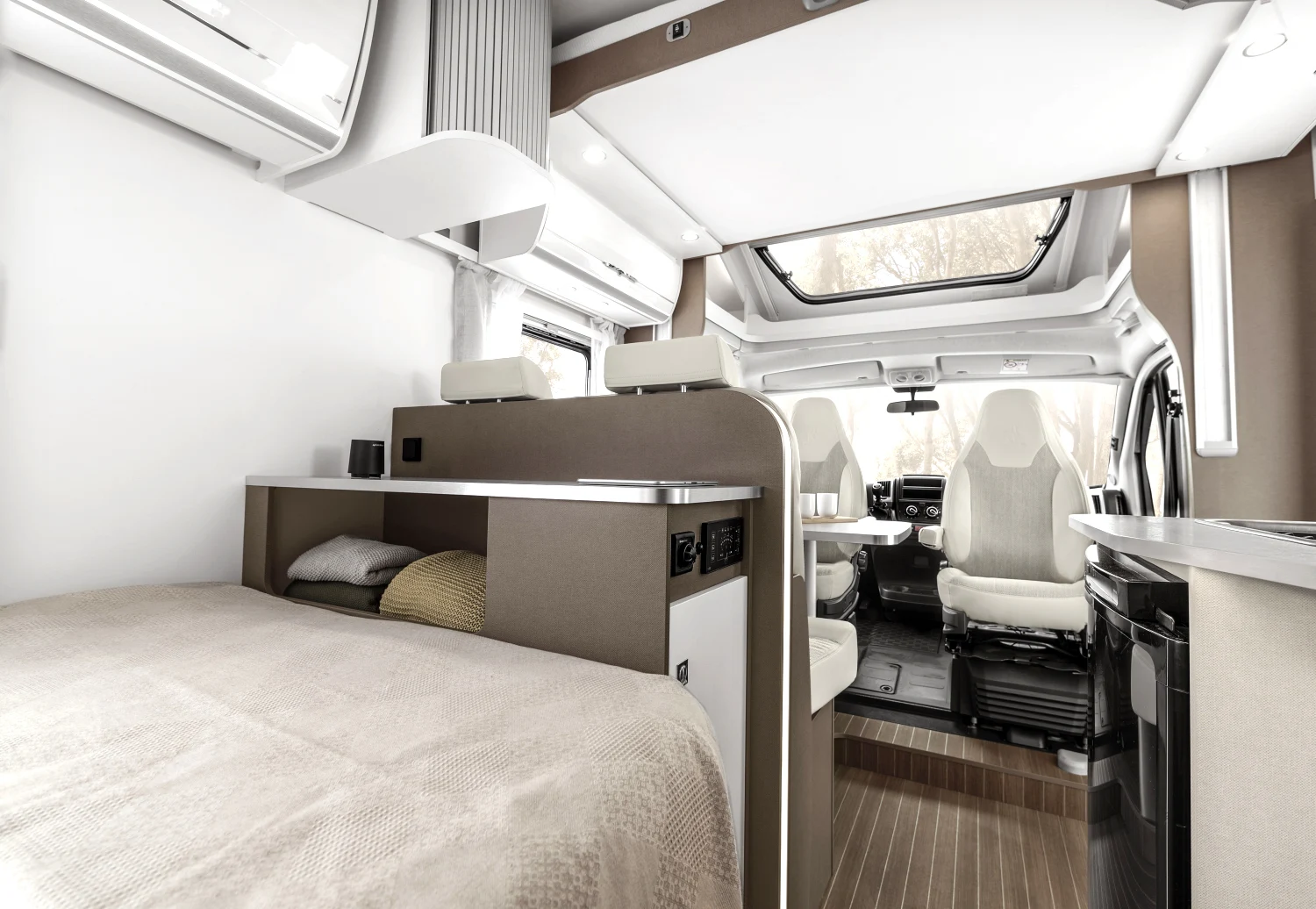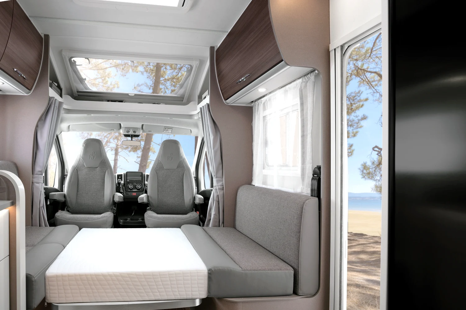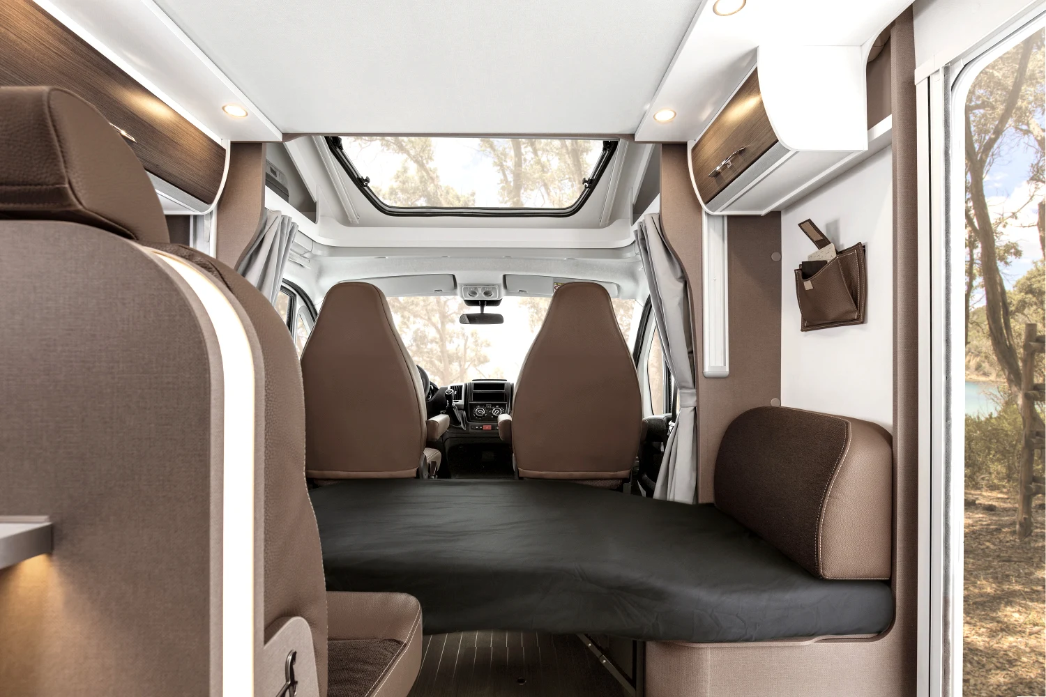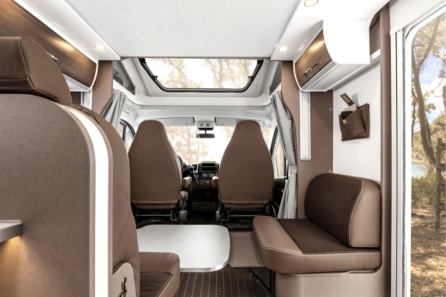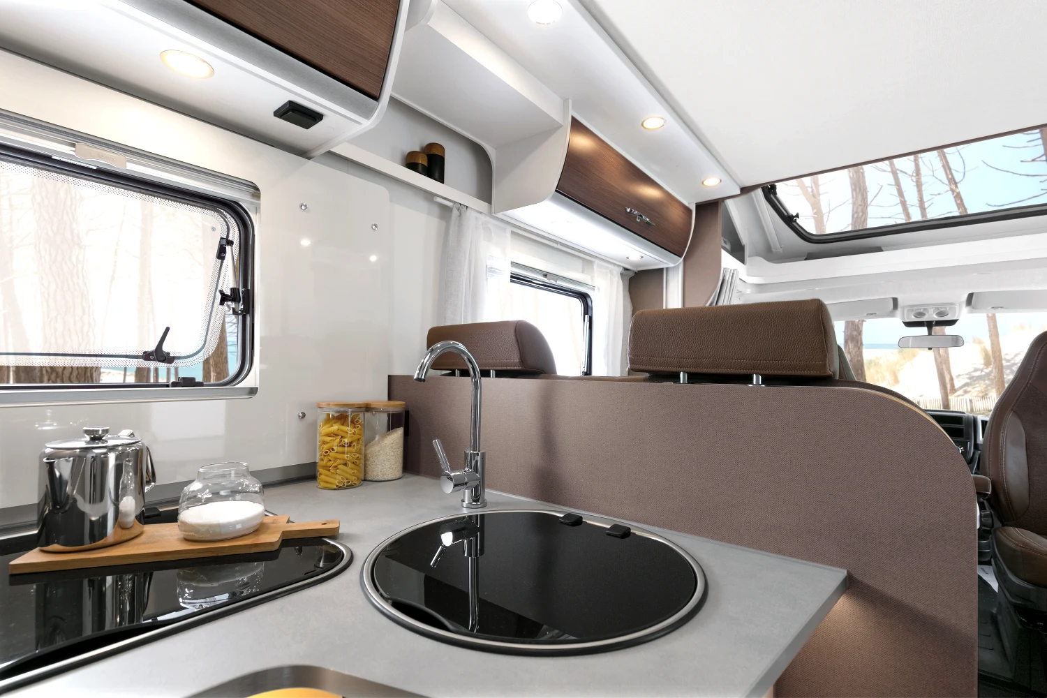 Włoski producent kamperów proponuje nie tylko bezpieczną i komfortową jazdę, ale też atrakcyjny design. Dzięki nowatorskiej koncepcji wnętrza można się poczuć wyjątkowo – klimatyczna i wygodna przestrzeń sprzyja odbieraniu podróżniczych doznań wszystkimi zmysłami. Innowacyjne modele półintegra dla 4 lub 5 osób to doskonały wybór na weekend z ukochaną osobą, wycieczkę ze znajomymi, a także na wakacje z rodziną. Starannie rozplanowane miejsce na sypialnię, aneks kuchenny i jadalnię oraz łazienkę usatysfakcjonuje pasjonatów podróży i miłośników efektownych wnętrz.