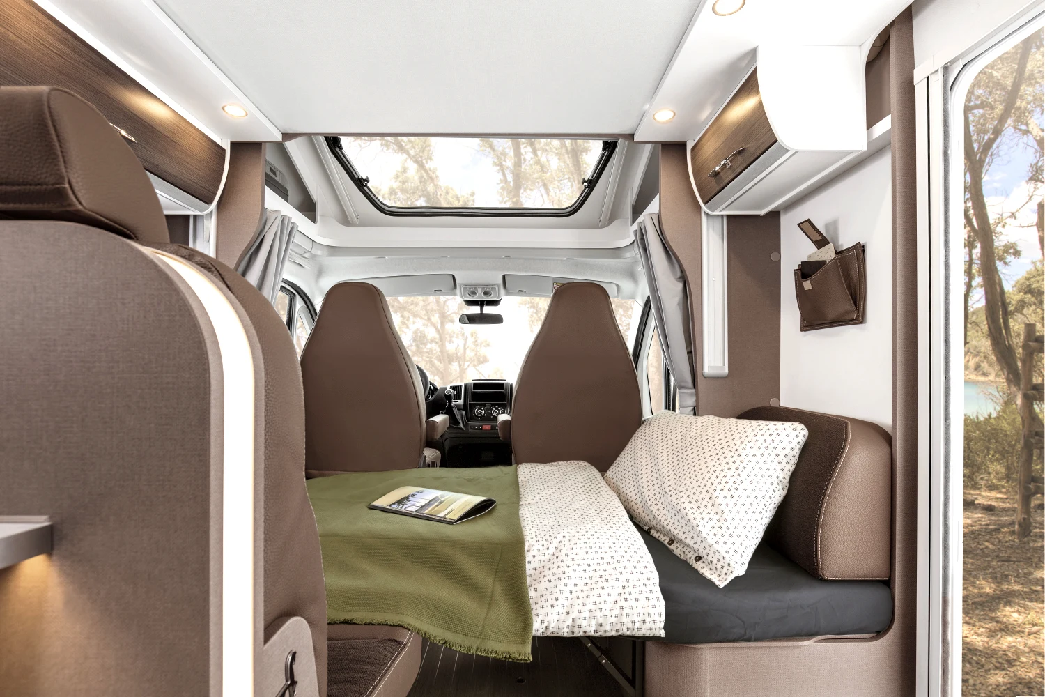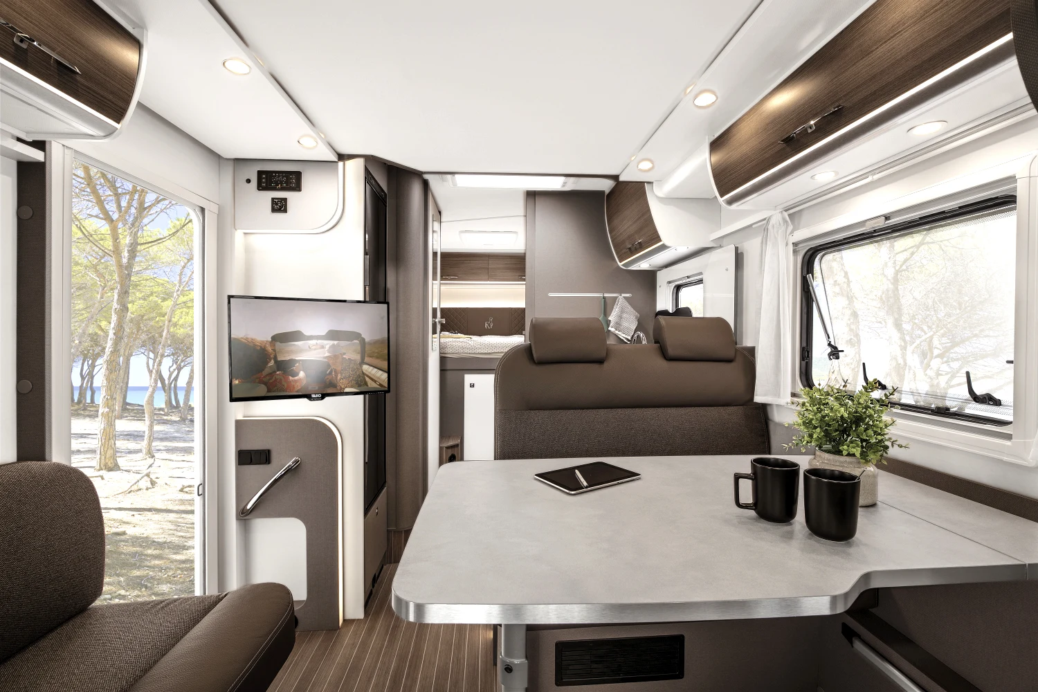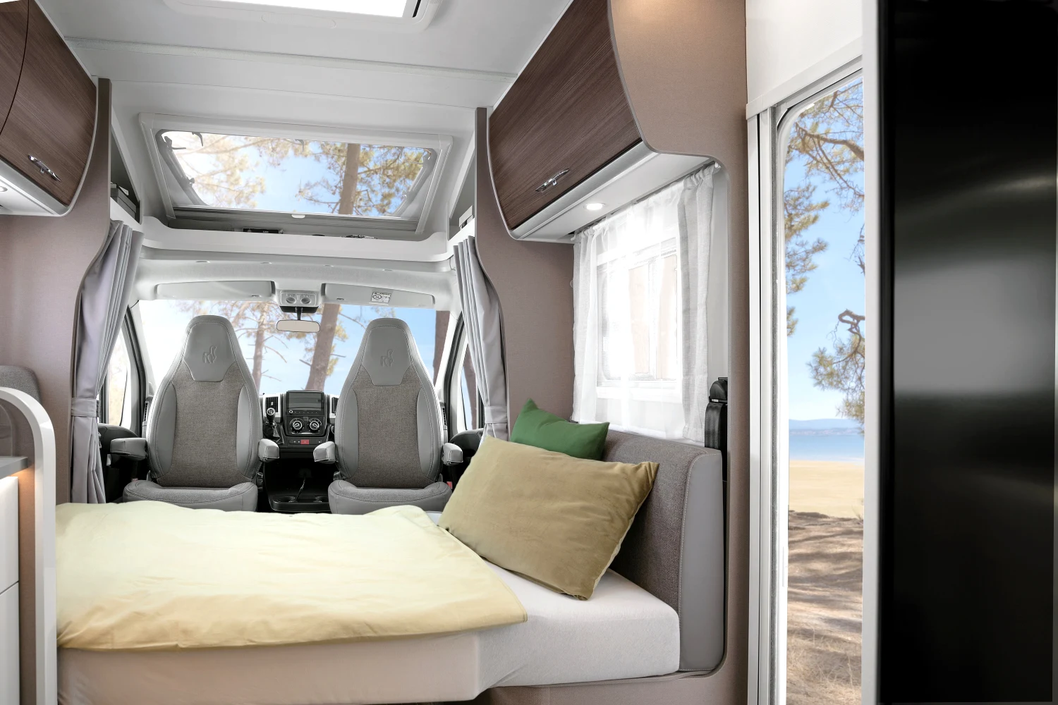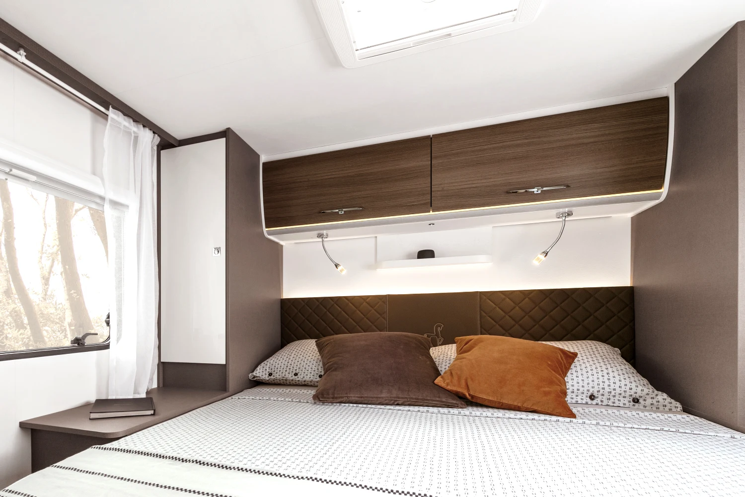 Włoski producent kamperów proponuje nie tylko bezpieczną i komfortową jazdę, ale też atrakcyjny design. Dzięki nowatorskiej koncepcji wnętrza można się poczuć wyjątkowo – klimatyczna i wygodna przestrzeń sprzyja odbieraniu podróżniczych doznań wszystkimi zmysłami. Innowacyjne modele półintegra dla 4 lub 5 osób to doskonały wybór na weekend z ukochaną osobą, wycieczkę ze znajomymi, a także na wakacje z rodziną. Starannie rozplanowane miejsce na sypialnię, aneks kuchenny i jadalnię oraz łazienkę usatysfakcjonuje pasjonatów podróży i miłośników efektownych wnętrz.