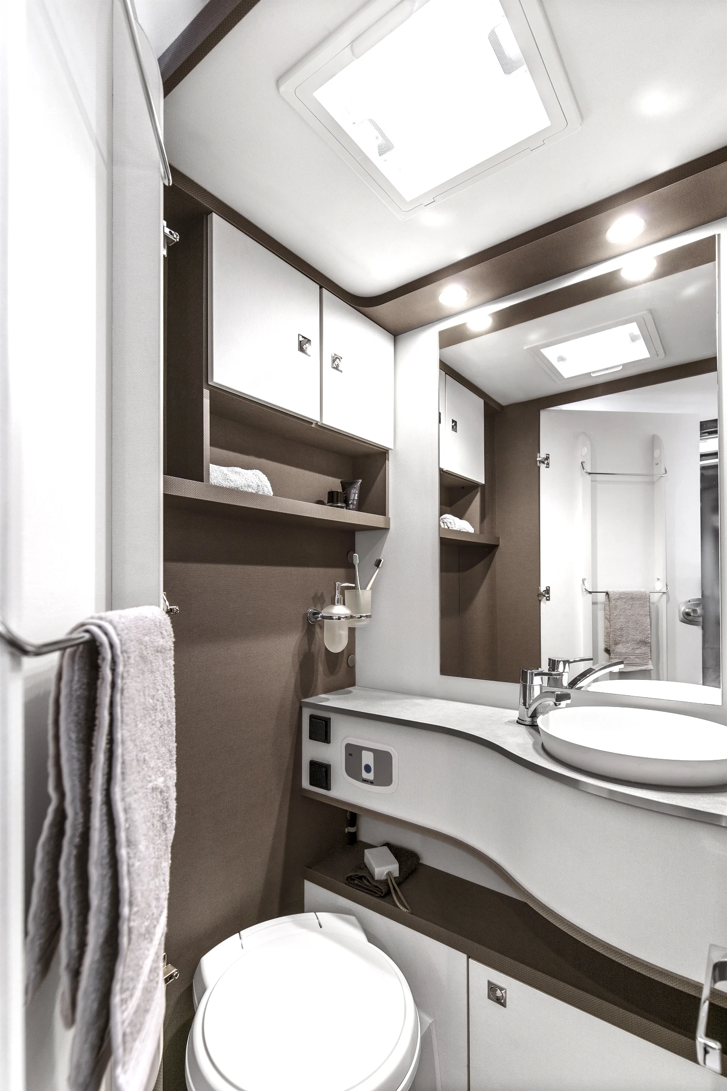 - pojemne szafki z systemem cichego domyku rozmieszczone w całym pojeździe, praktyczne półki
