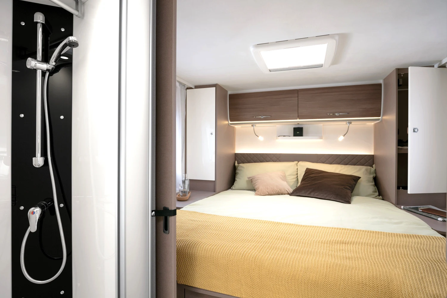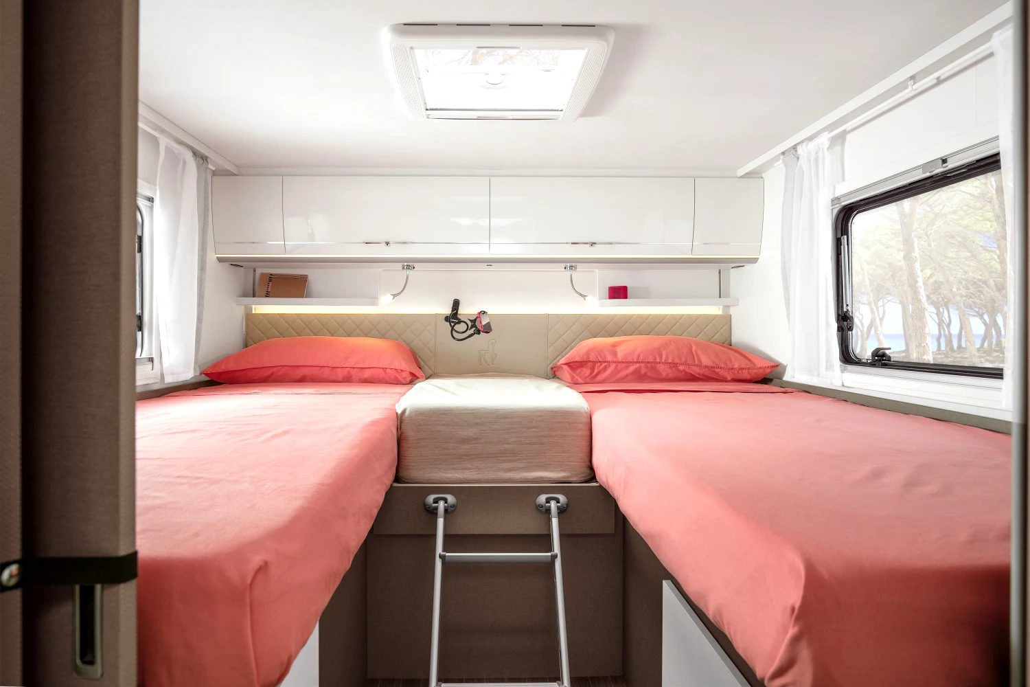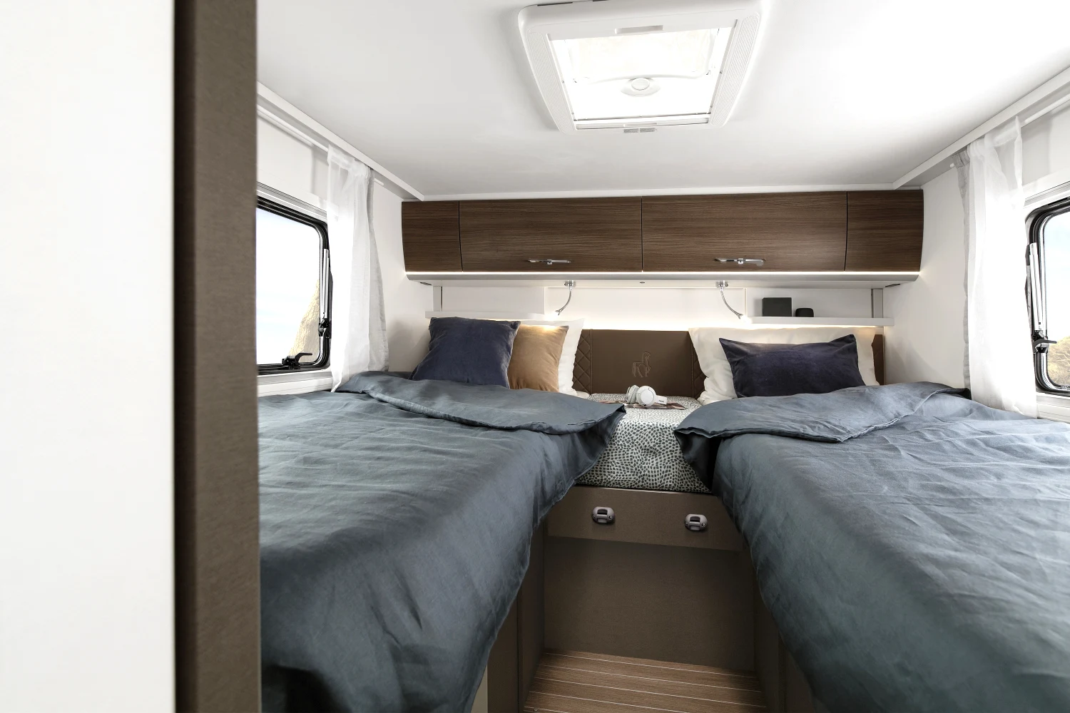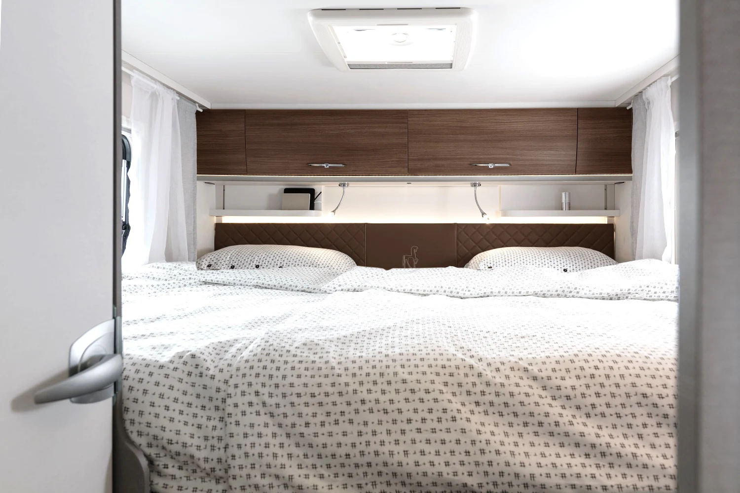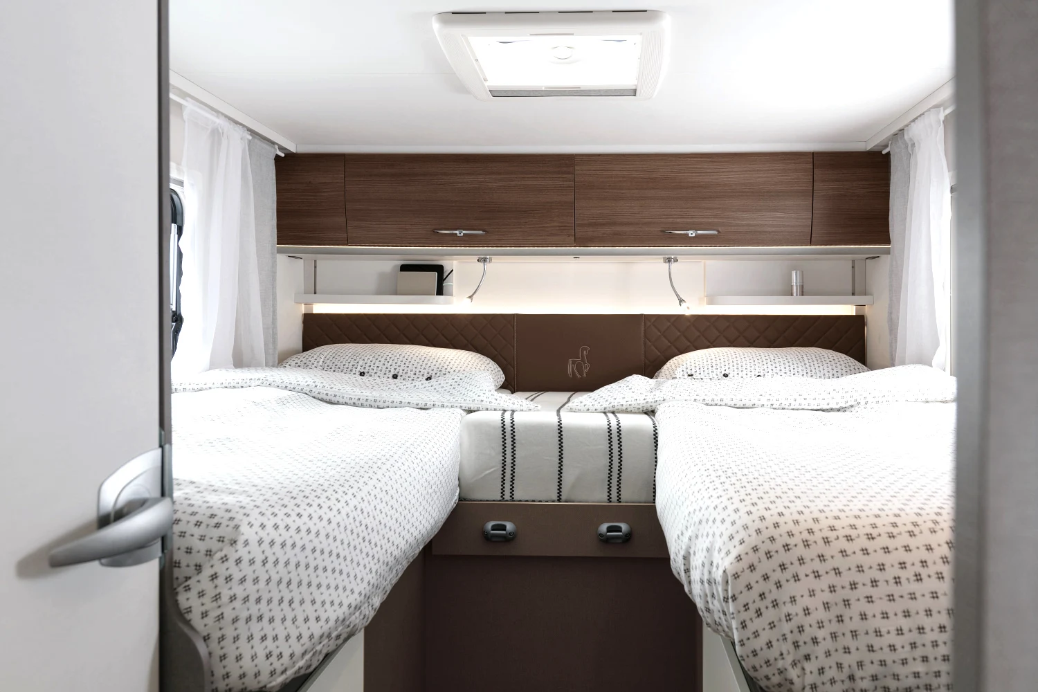 - pojedyncze lub podwójne łóżka sypialne (w zależności od modelu) z komfortowymi materacami wyposażonymi w zdejmowane pokrowce