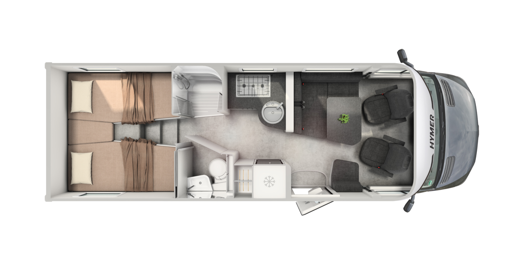 Trzy moduły solarne po 95W z kontrolerem 360W zapewniają pełną niezależność od zewnętrznej infrastruktury. System HYMER Smart Battery 2.0 z technologią LiFePO4 opcjonalnie rozbudowywalny do 320 Ah – dla maksymalnej samowystarczalności.