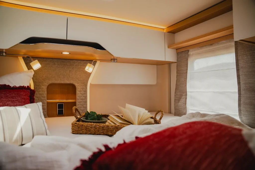 • Plisowane zasłony kabiny premium chroniące przed wścibskimi spojrzeniami i nadmiernym nasłonecznieniem