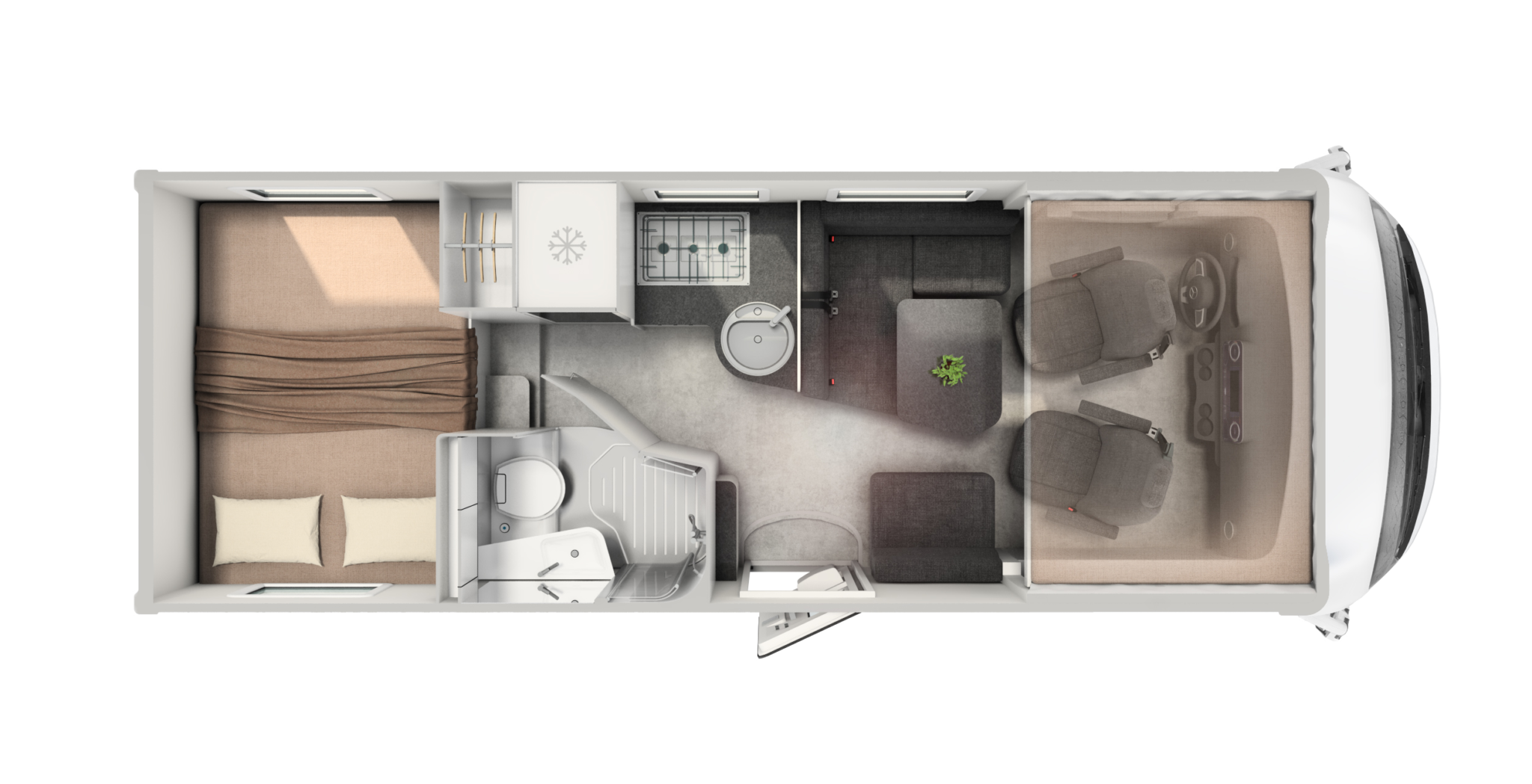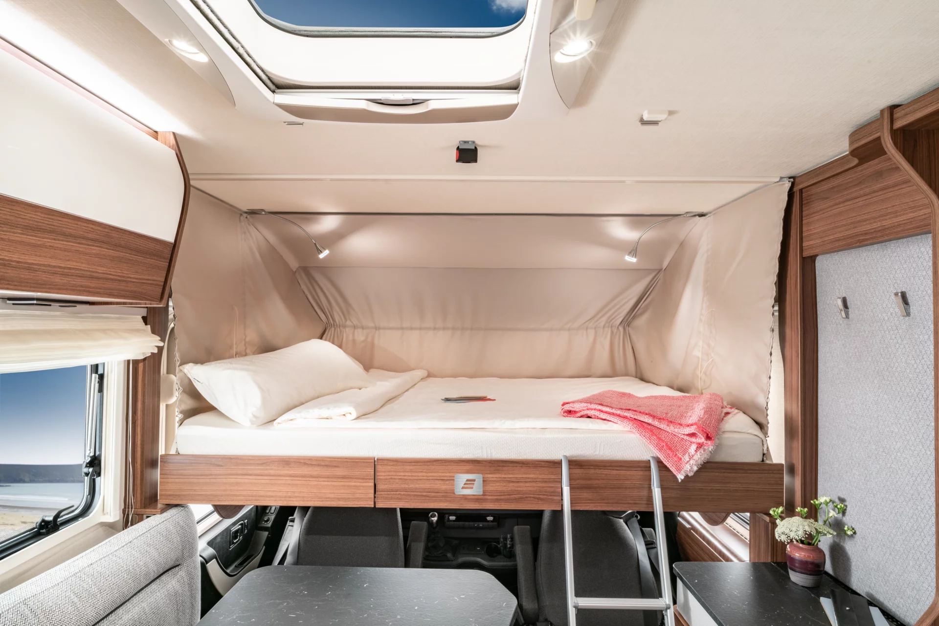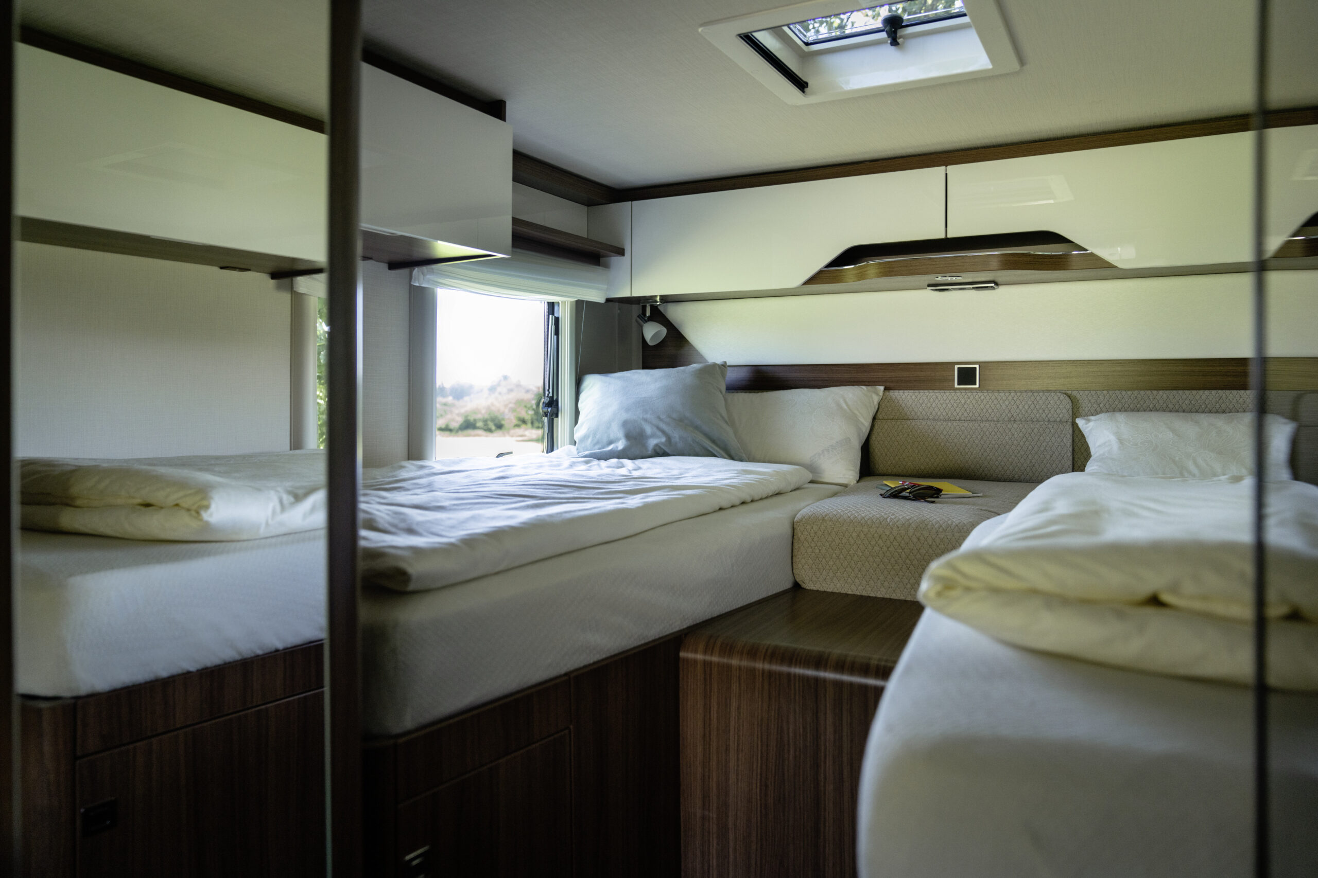 - Opuszczane łóżko z przodu z funkcją pojedynczego łóżka, sterowane ręcznie*