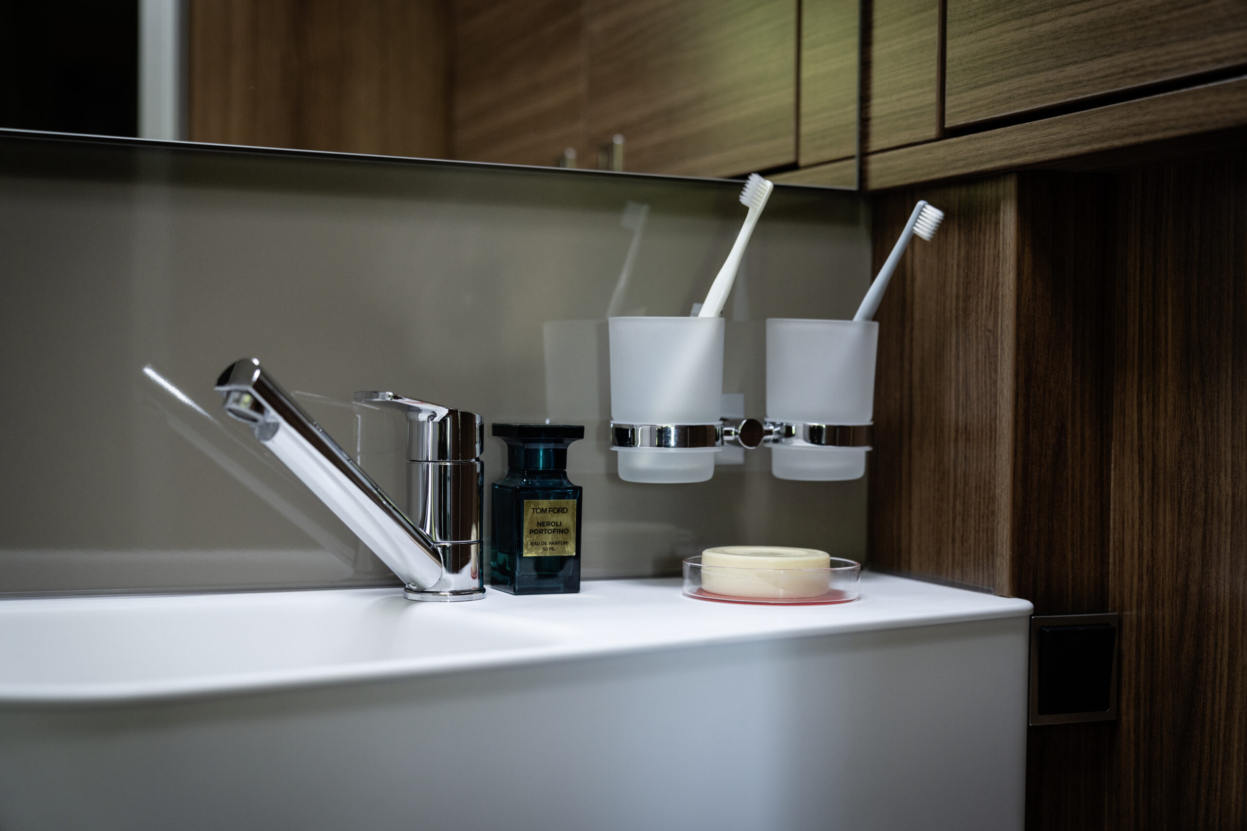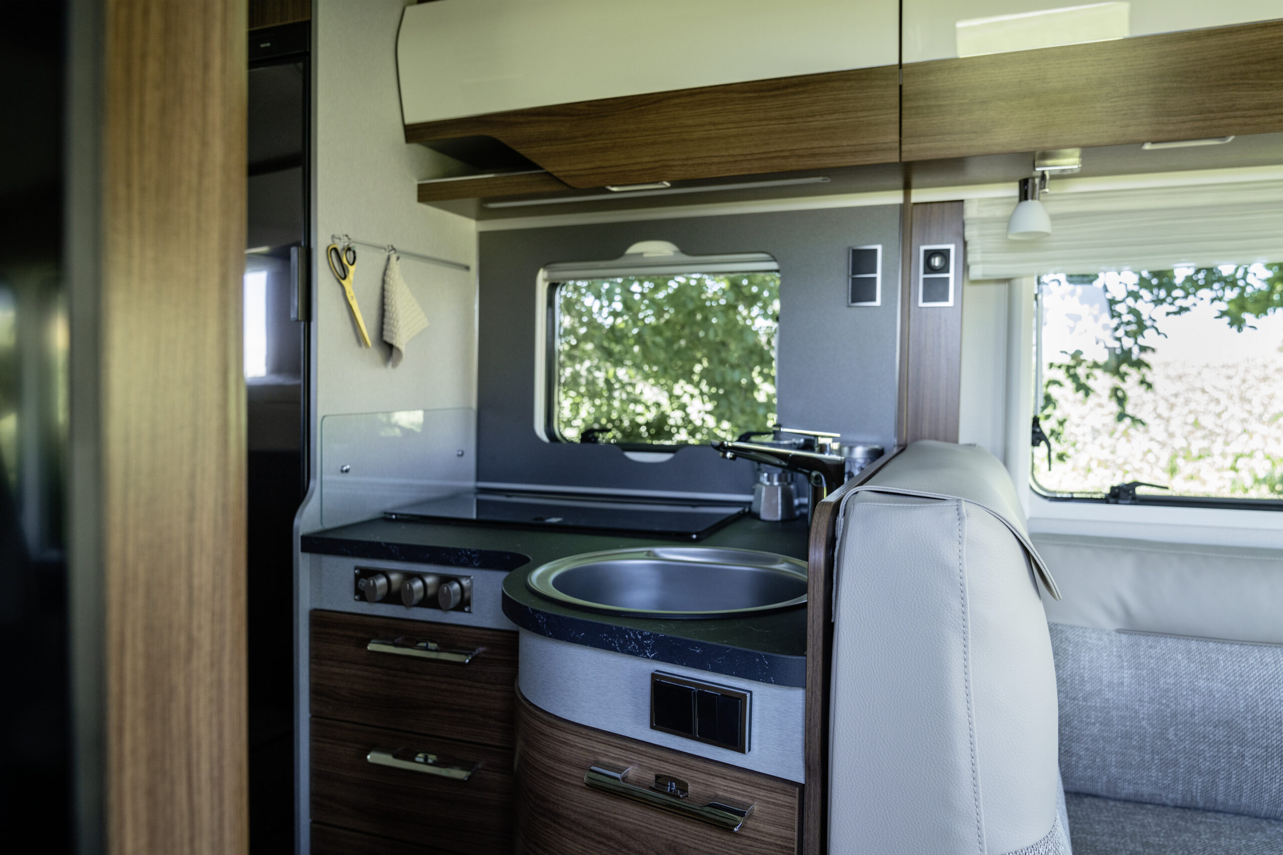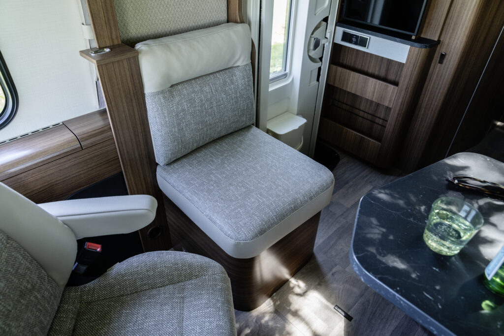 - Wielofunkcyjna szafka boczna z siedziskiem, schowkiem na buty i multimediami oraz gniazdkami 2 x 230 V i 1 Twin-USB