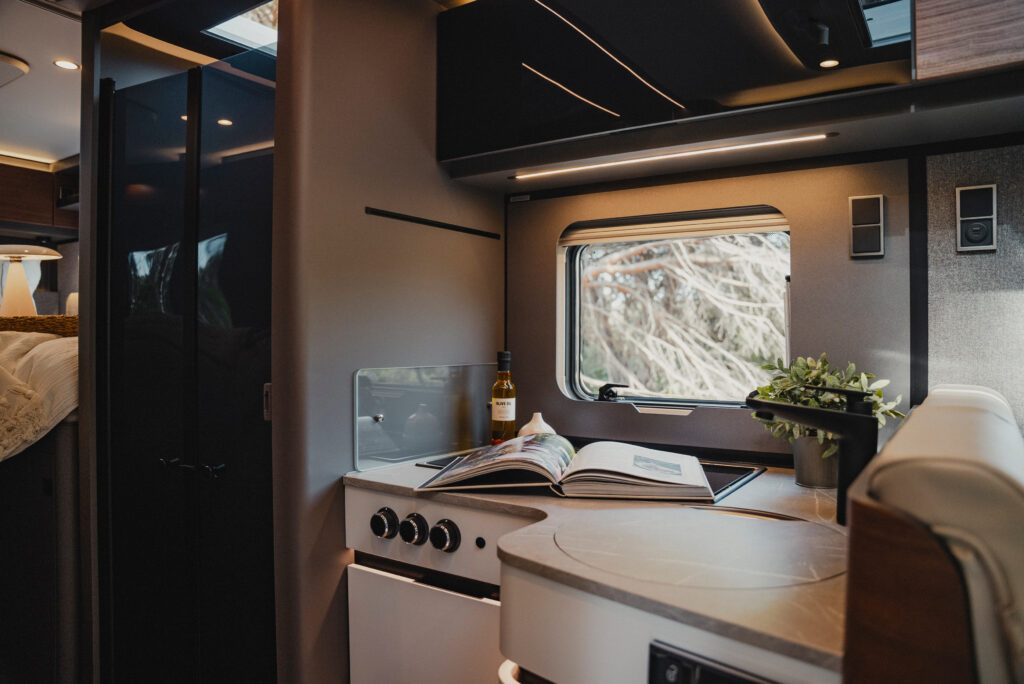 - Szerokie, w pełni wysuwane szuflady z systemem Soft-Close i elektryczną blokadą centralną ułatwiają organizację i zabezpieczają zawartość podczas jazdy.