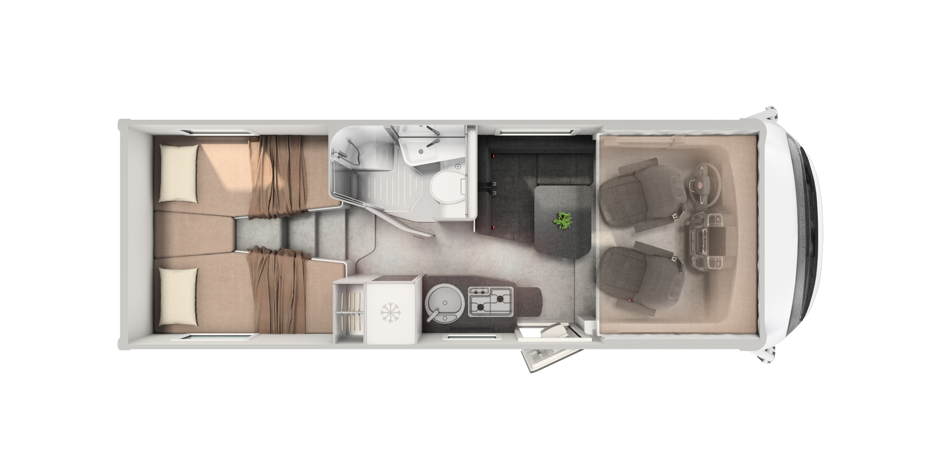 Inteligentne rozwiązania pozwalają maksymalnie wykorzystać każdy centymetr. Ogromny garaż z dostępem z obu stron (ładowność do 350 kg, opcjonalnie 450 kg) oraz liczne schowki i szafki wewnątrz pomieszczą wszystko, czego potrzebujesz w podróży.