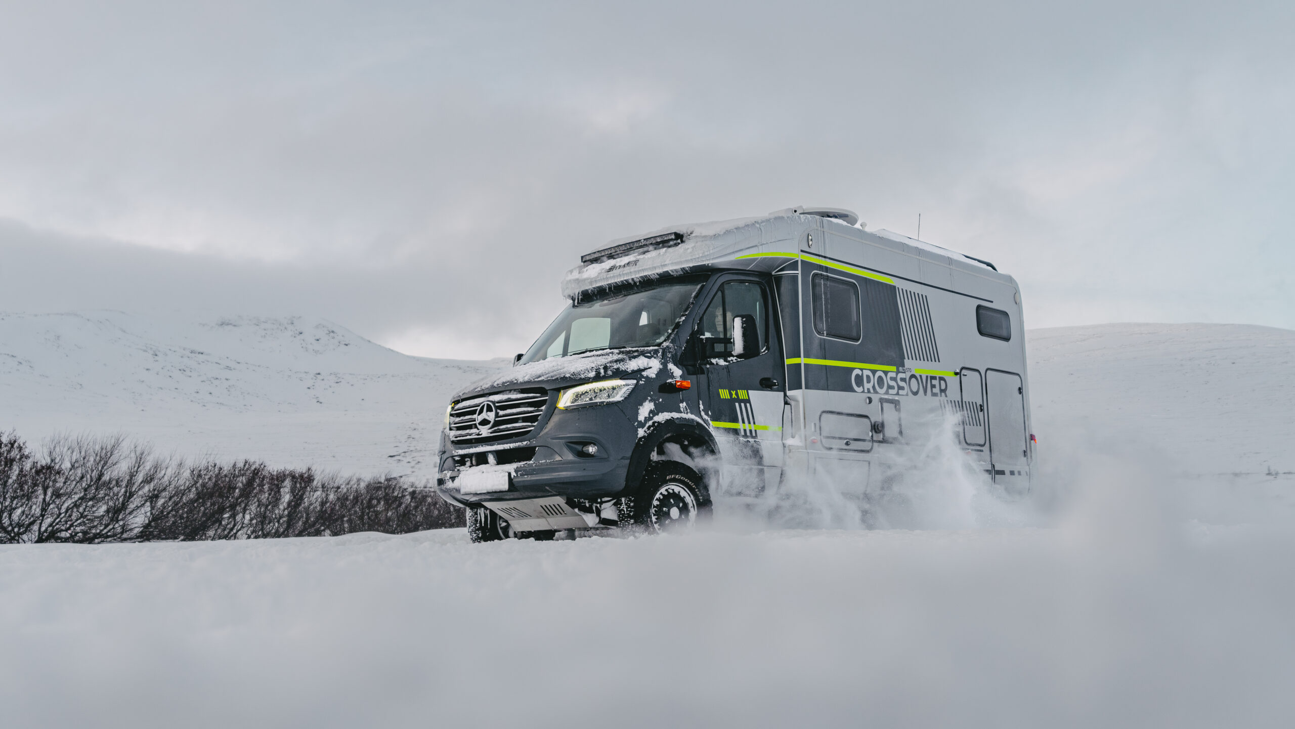 Przyciągaj spojrzenia dzięki ekskluzywnemu, dwukolorowemu lakierowaniu (Tenoryty Szary / Krystaliczny Srebrny) i dynamicznym oklejeniom CrossOver z zielonymi akcentami. To kamper, który wygląda równie ekscytująco, jak przygody, do których został stworzony.