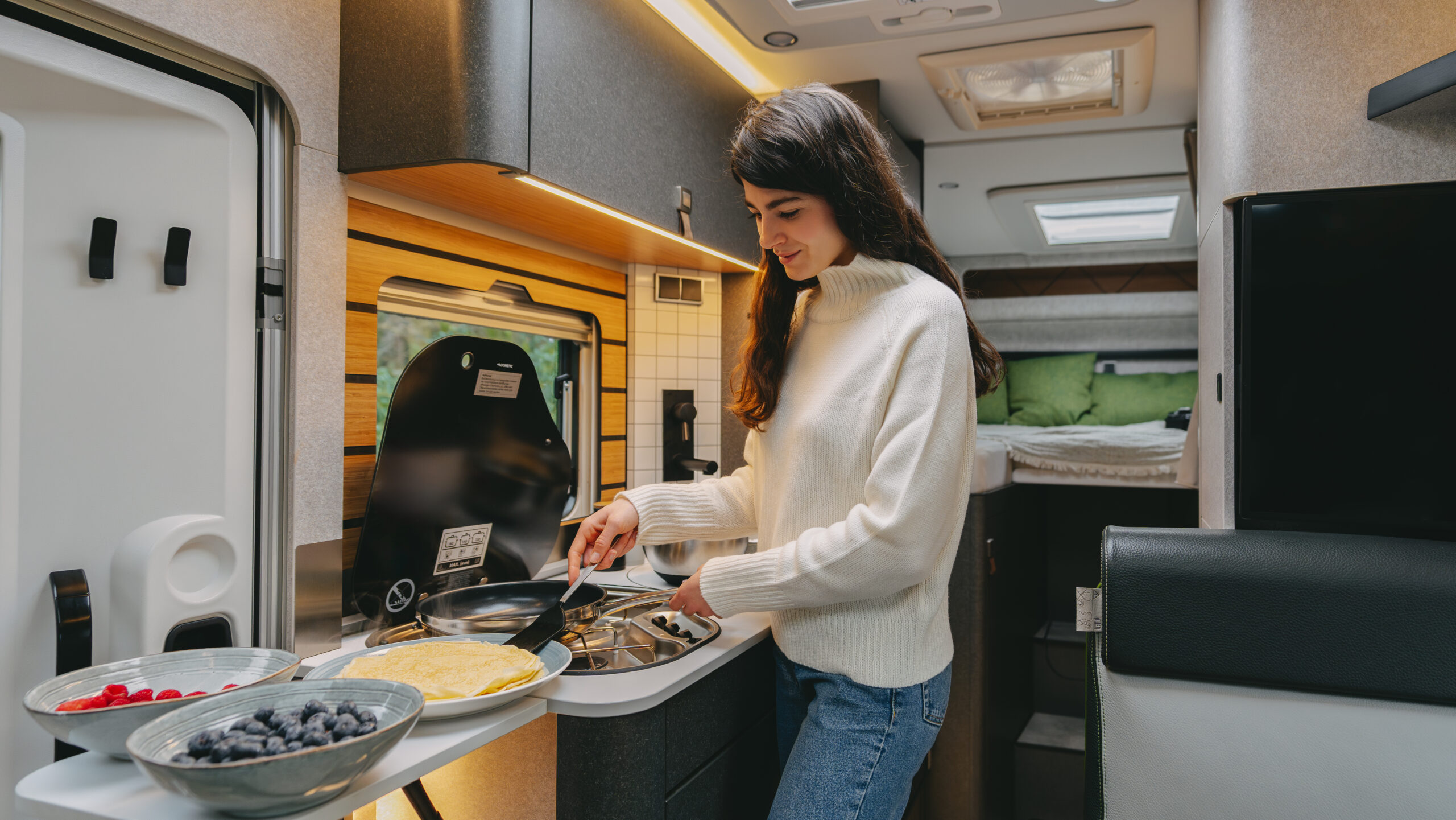Niezależność to Twoje drugie imię. Standardowe wyposażenie CrossOver, obejmujące m.in. wydajne ogrzewanie diesla 6kW, system solarny (2x95W), filtr wody i drugą kasetę toaletową, pozwala na długie postoje z dala od cywilizacji.