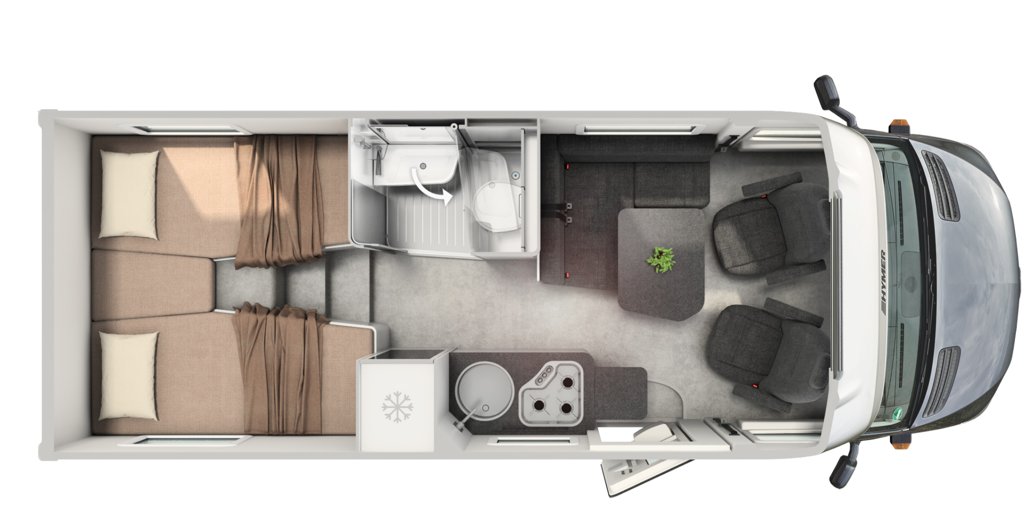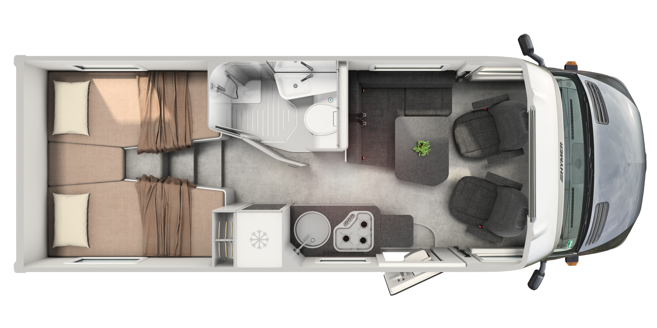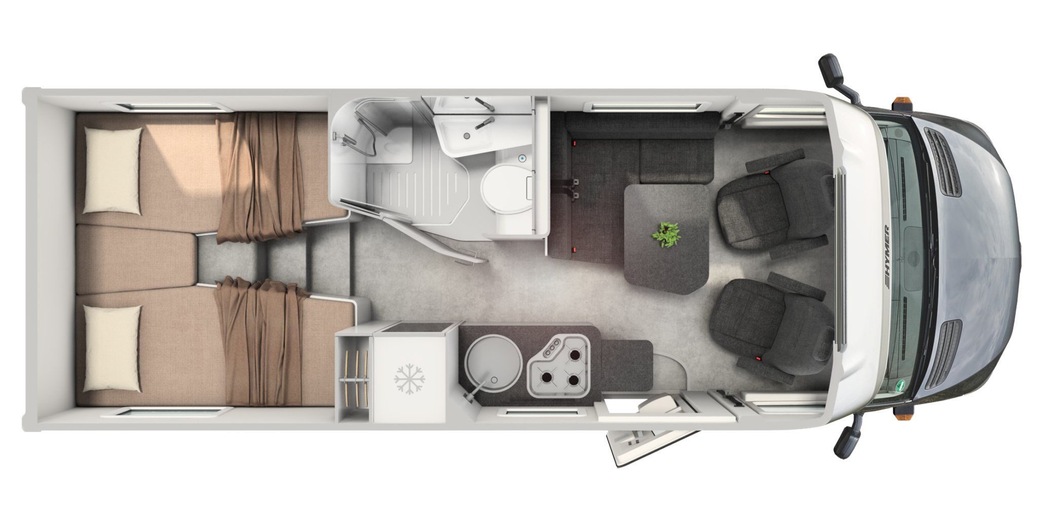 • Wydłużone łóżko pojedyncze po stronie kierowcy (o 7 cm dłuższe), zapewniające komfort nawet wyższym osobom.