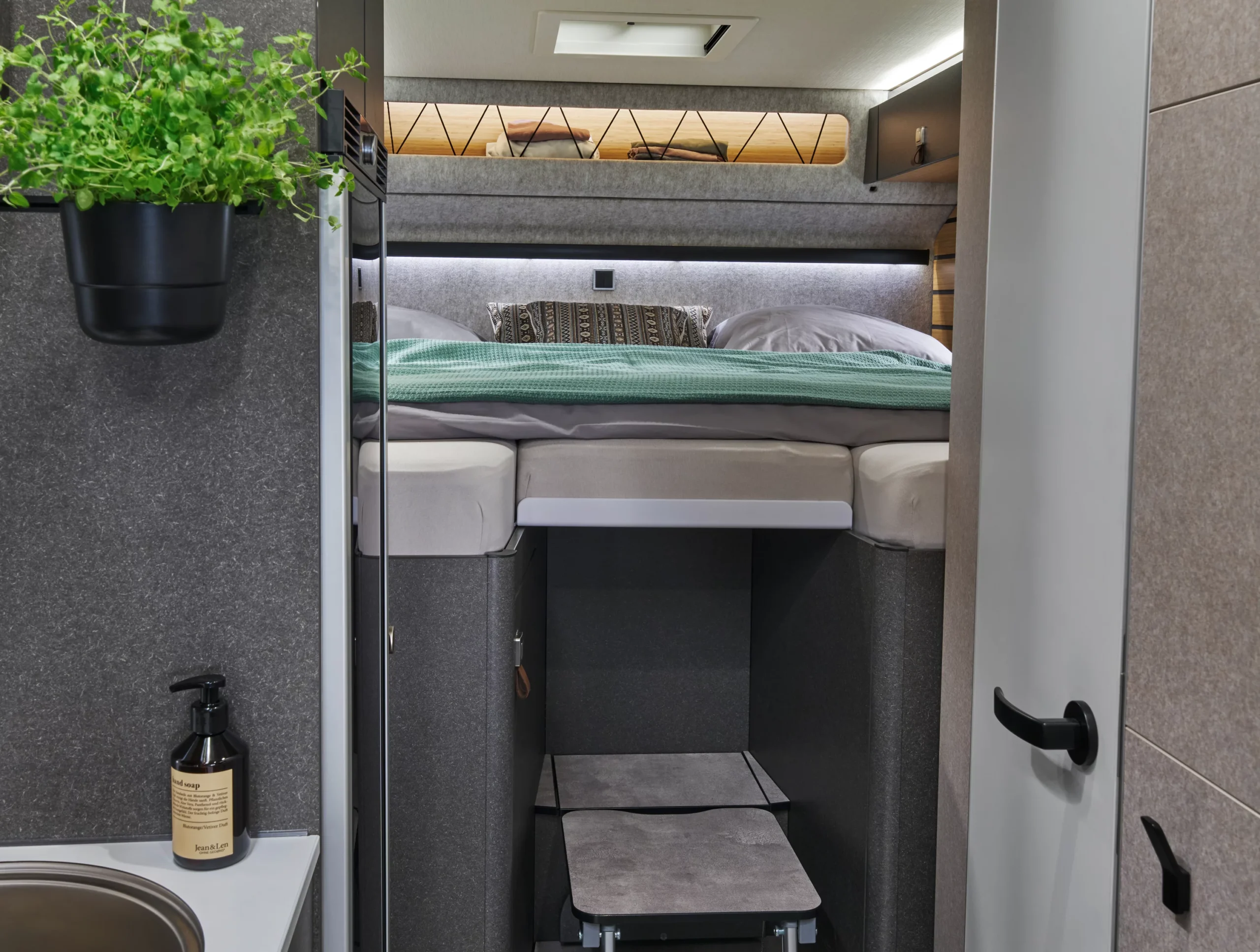 • System spania klasy premium z komfortowymi materacami piankowymi na stelażach talerzowych gwarantujący zdrowy i regenerujący sen.