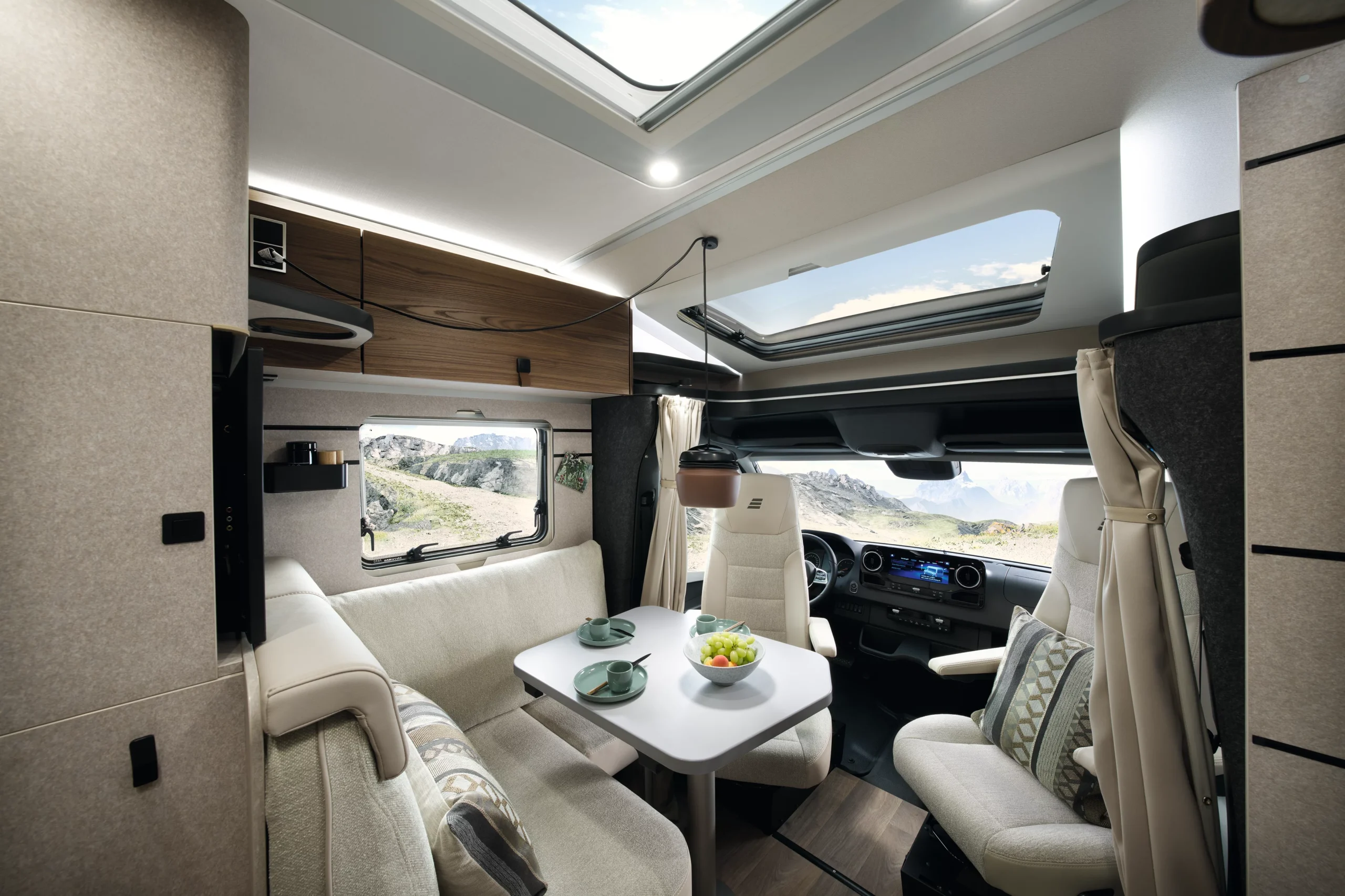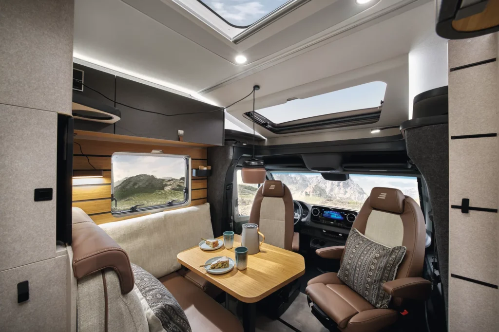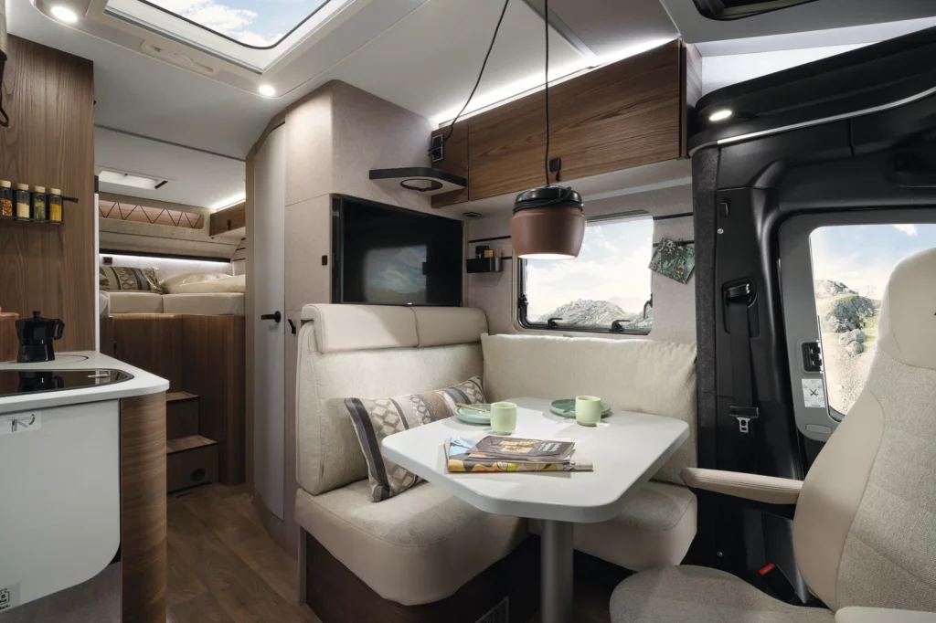 • Więcej przestrzeni i komfortu dzięki zwiększonej przestrzeni nad głową (przez rezygnację z tylnych szafek) i większej ilości miejsca na nogi.