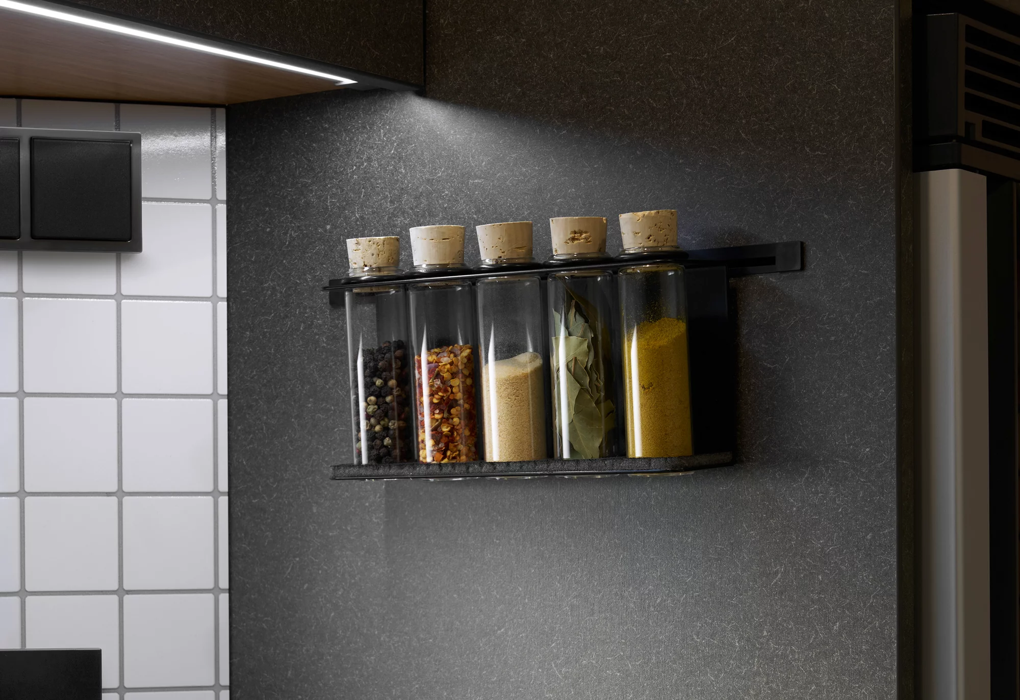 • Multifunkcyjna ściana umożliwiająca zawieszenie dodatkowych akcesoriów kuchennych*.