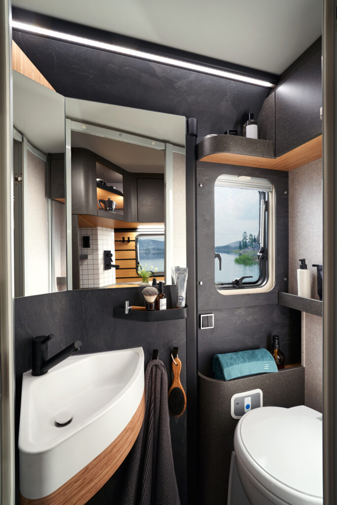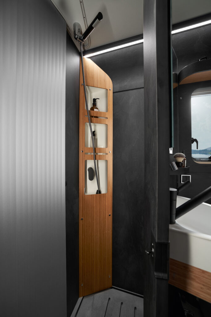 - Zbiornik świeżej wody o pojemności 120 litrów pozwalający na długie prysznice nawet podczas podróży z dala od infrastruktury,