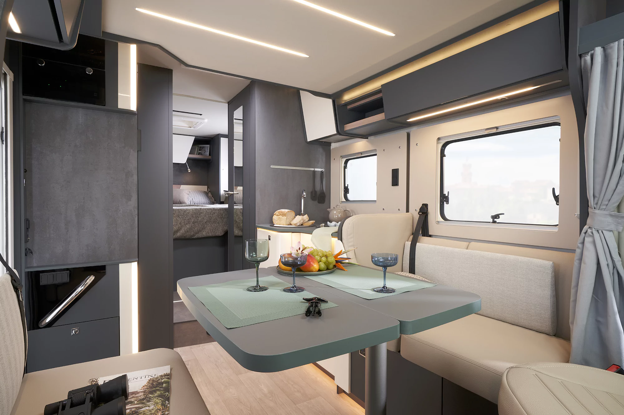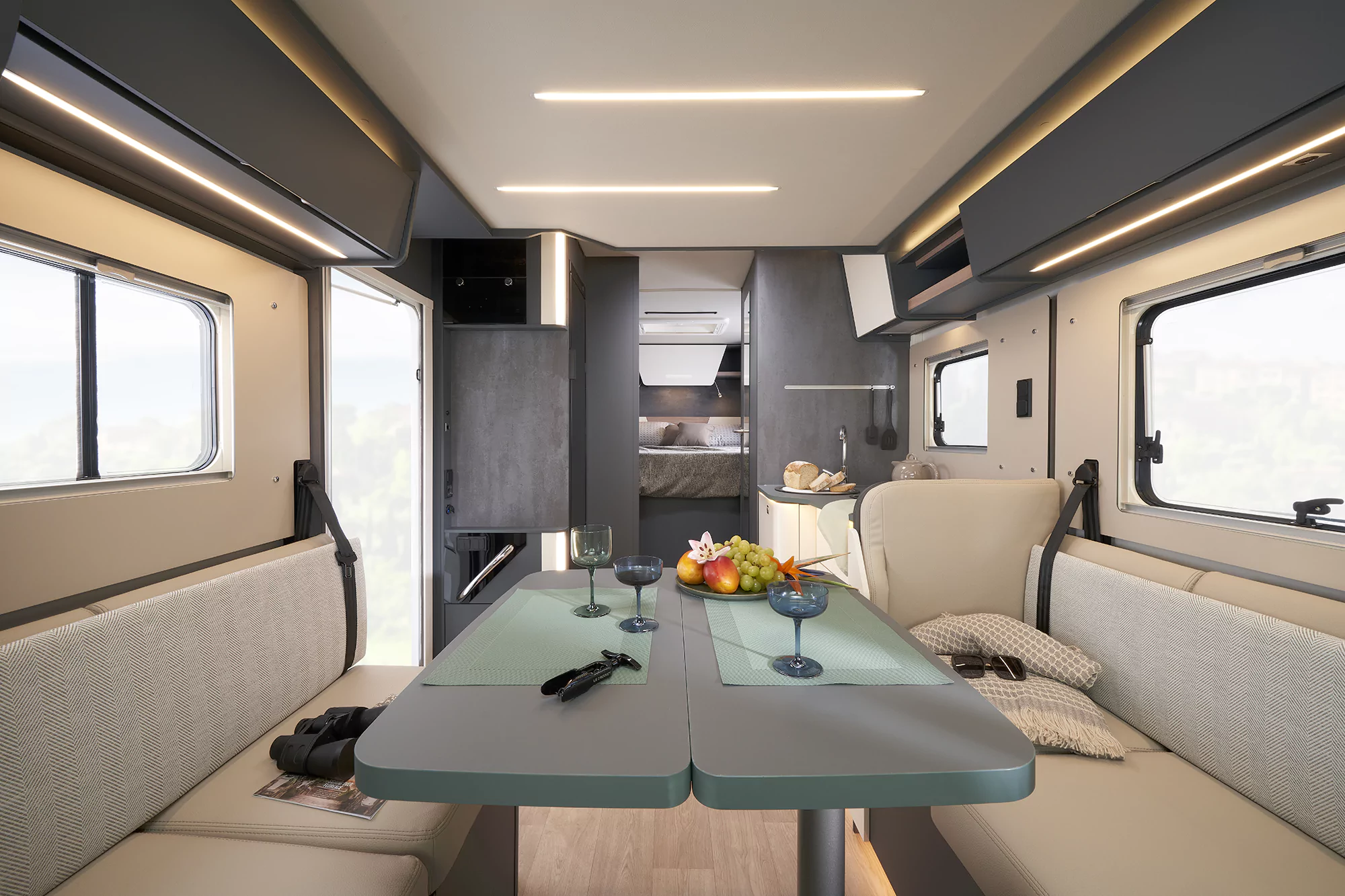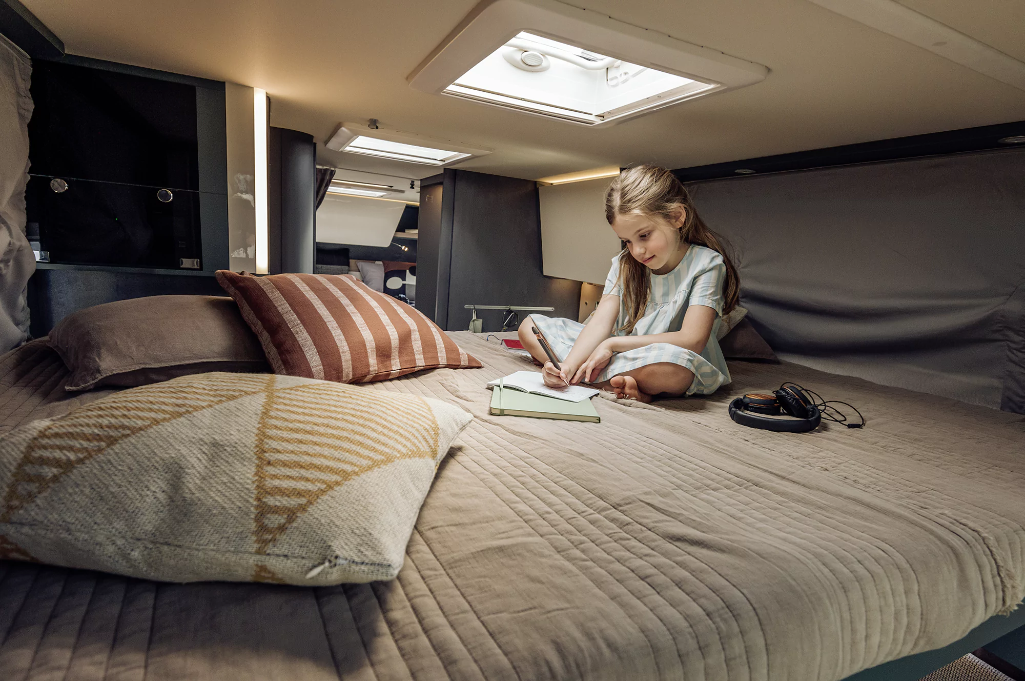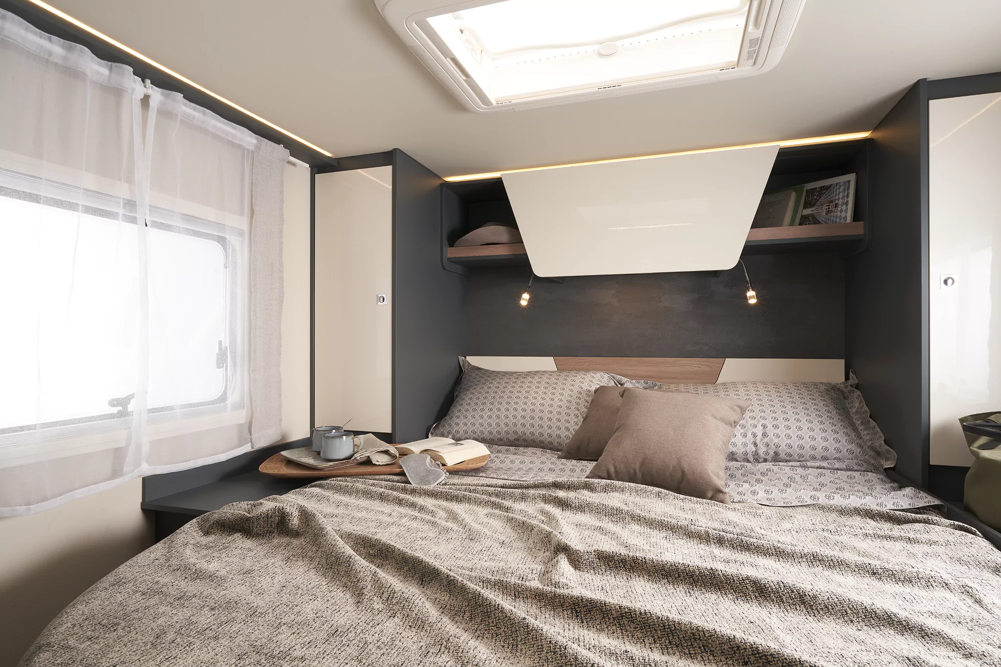 • 100% oświetlenie LED, w tym wielopoziomowe oświetlenie pośrednie w kabinie oraz salonie, dodatkowe lampki ze złączem USB w sypialni