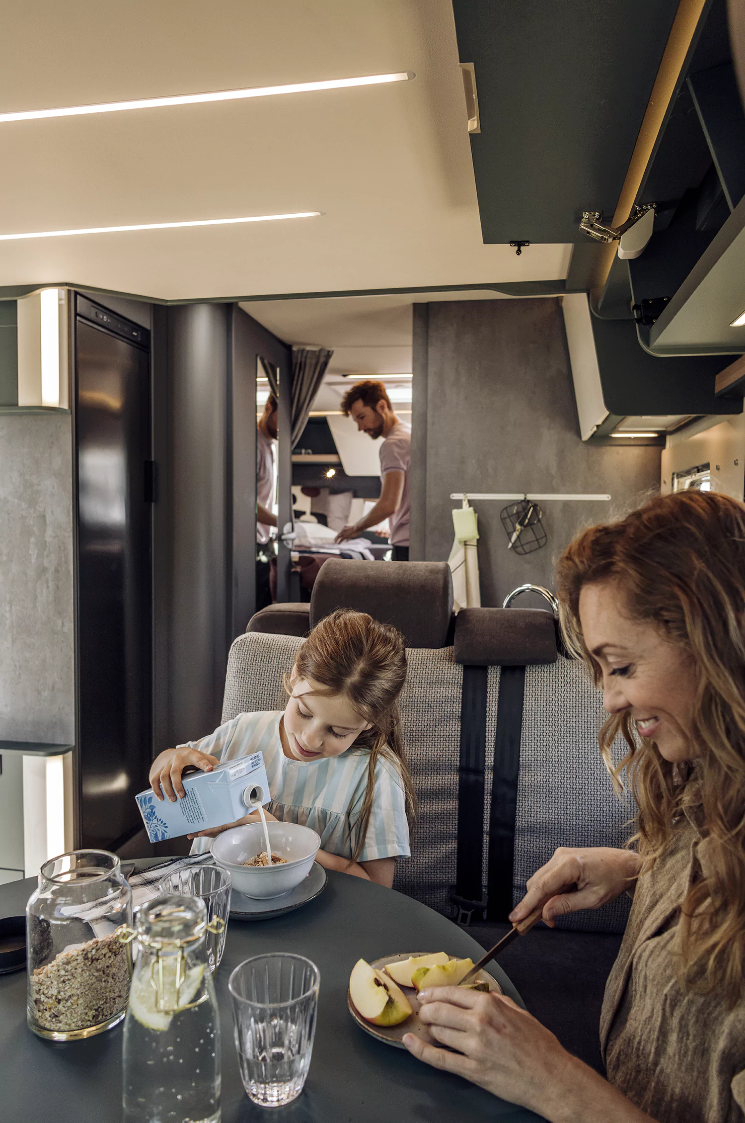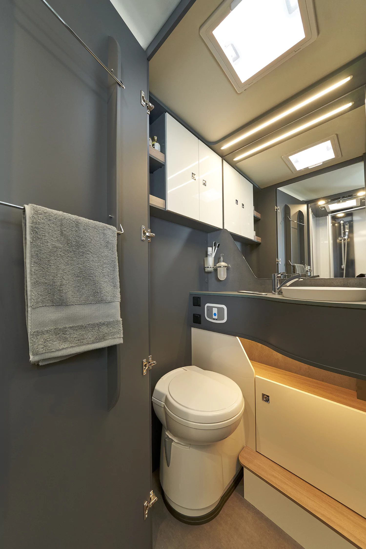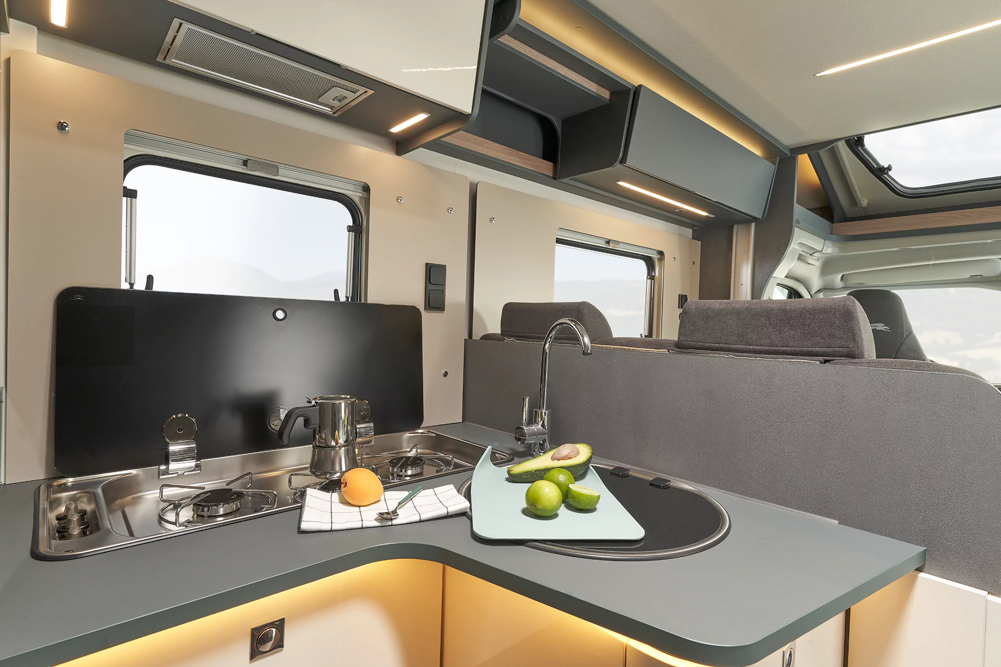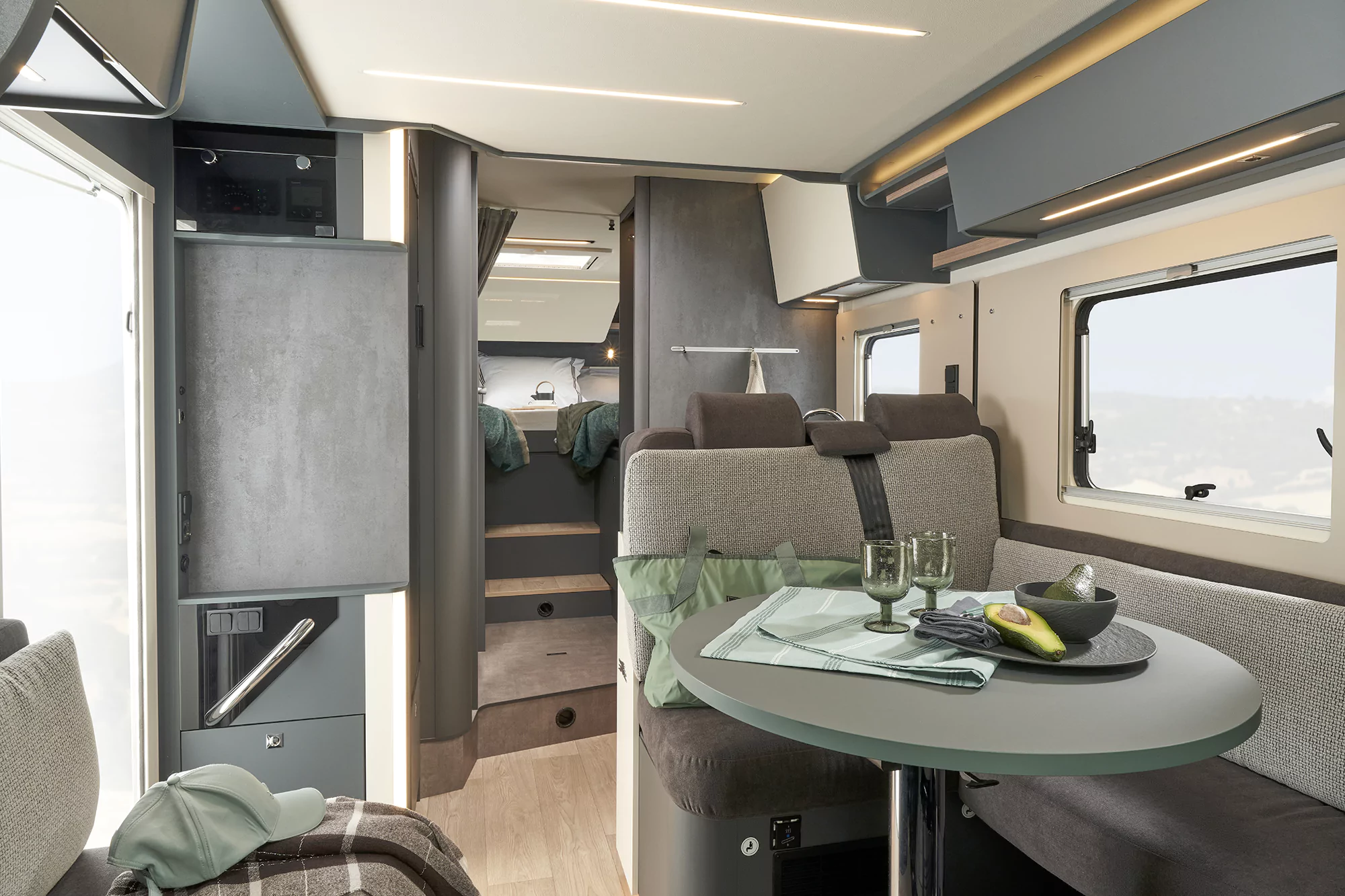 • 100% oświetlenie LED, w tym wielopoziomowe oświetlenie pośrednie w kabinie oraz salonie, dodatkowe lampki ze złączem USB w sypialni