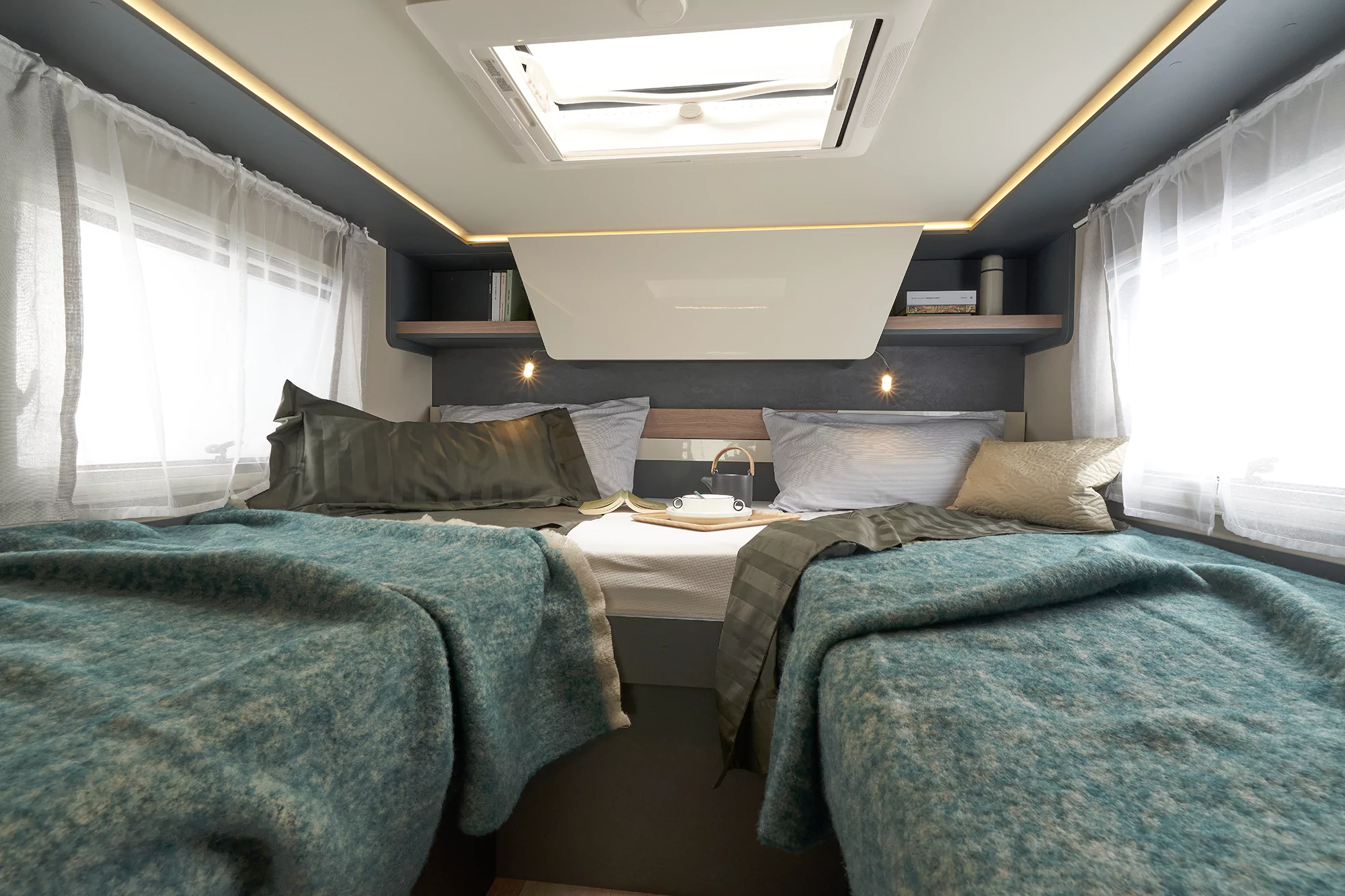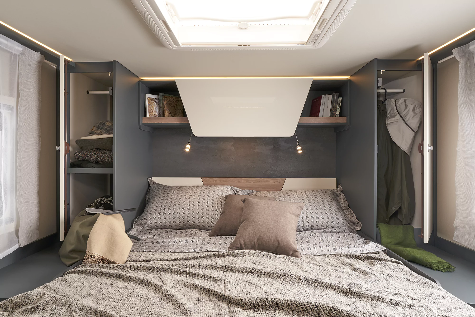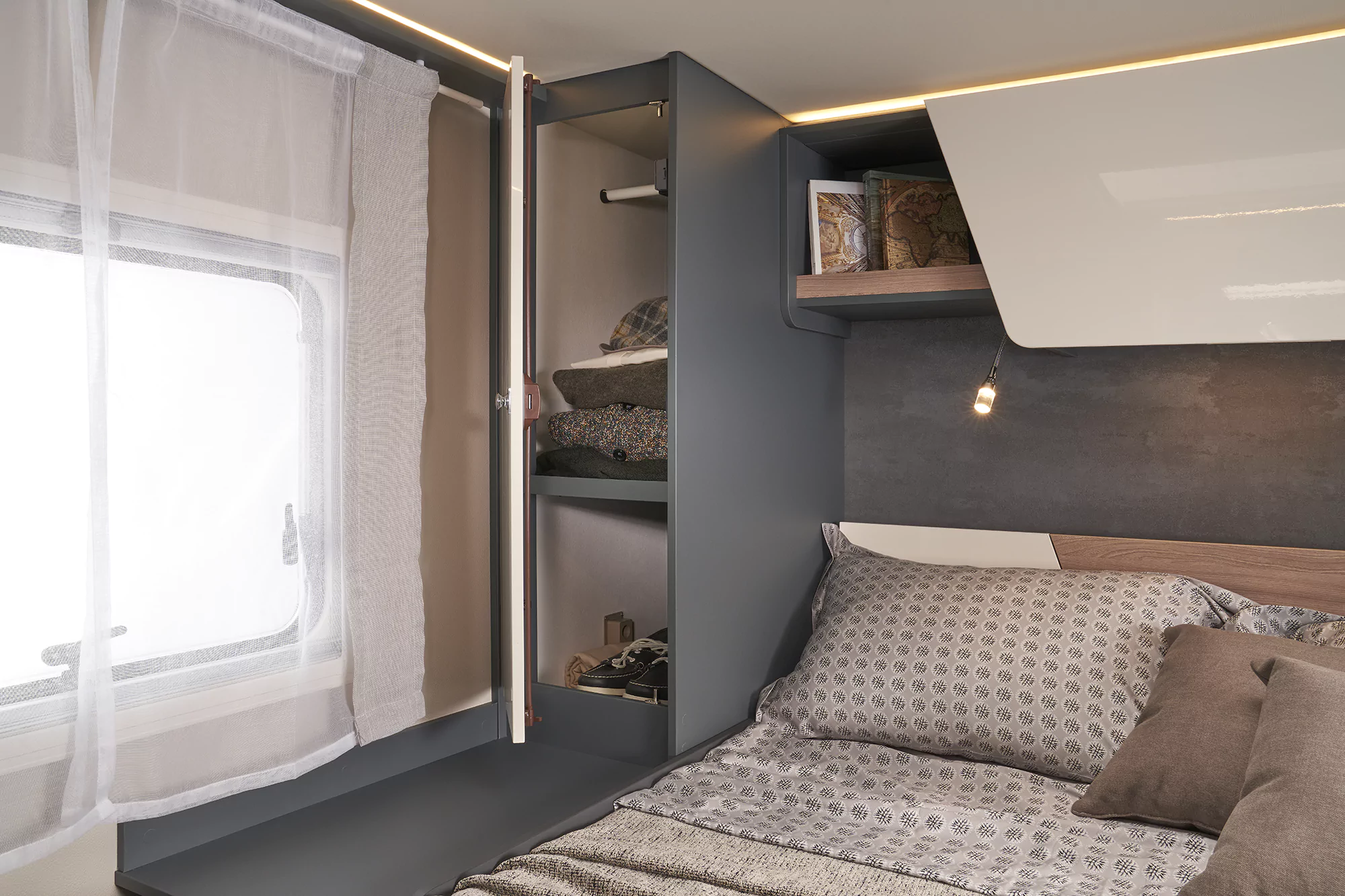 • wiele schowków do przechowywania osobistych rzeczy zarówno w części dziennej, jak i sypialnej
